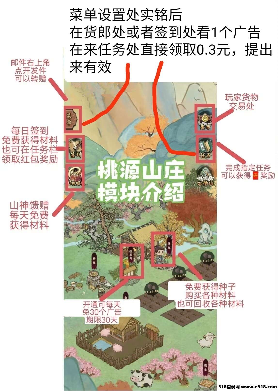 在零撸桃源山记中,保底小麦1.8+转盘0.9=2.7元