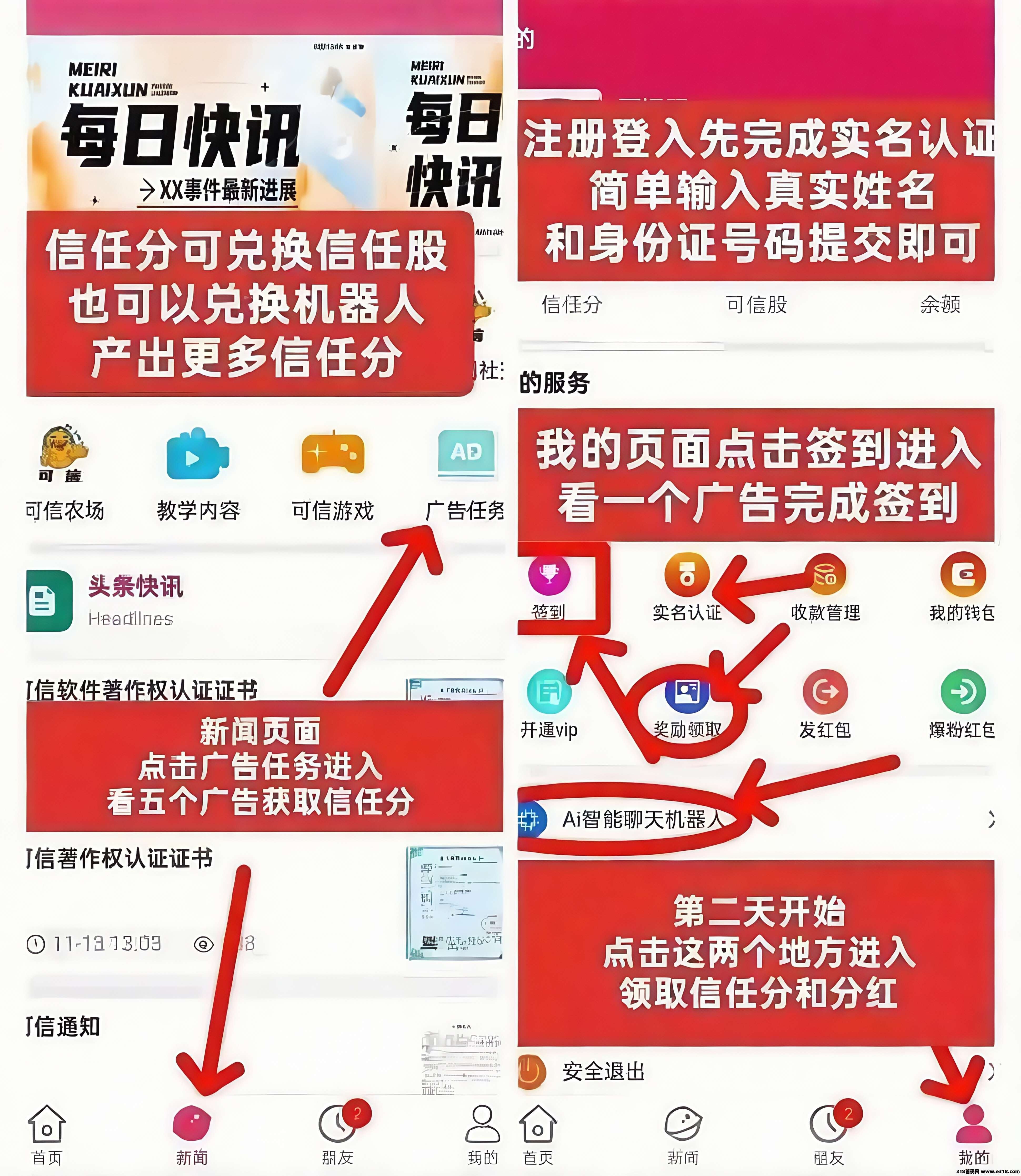 ①:速度的快点来,注册以后简单实铭认证,即可送1枚可信股参与分虹、一台机器人!