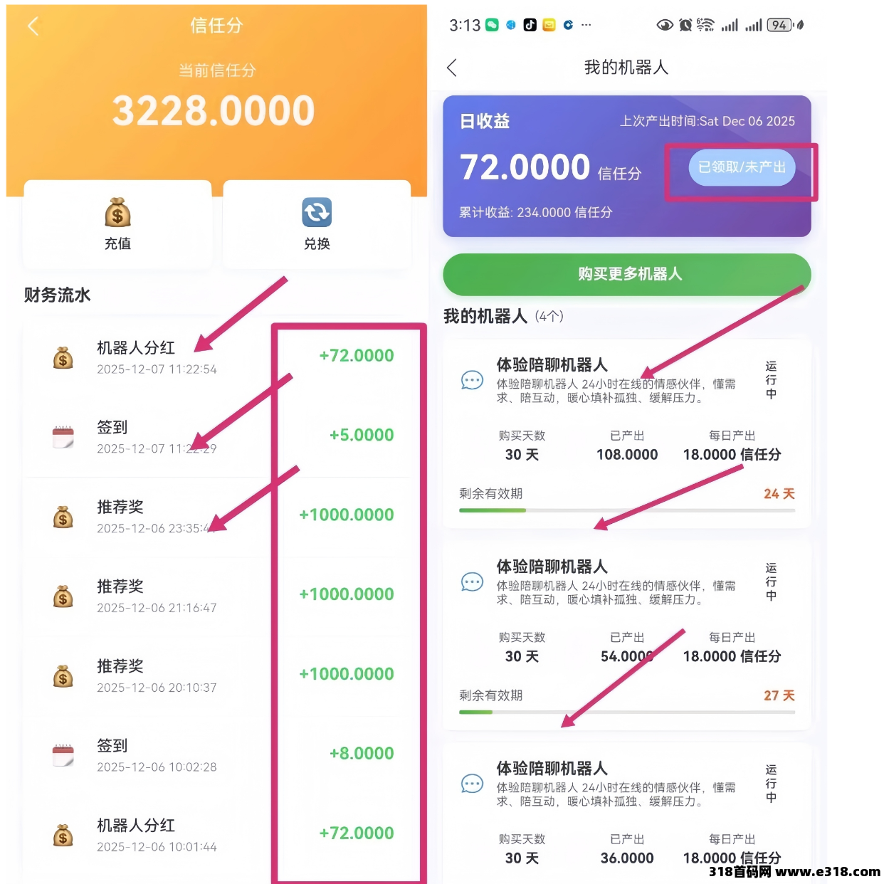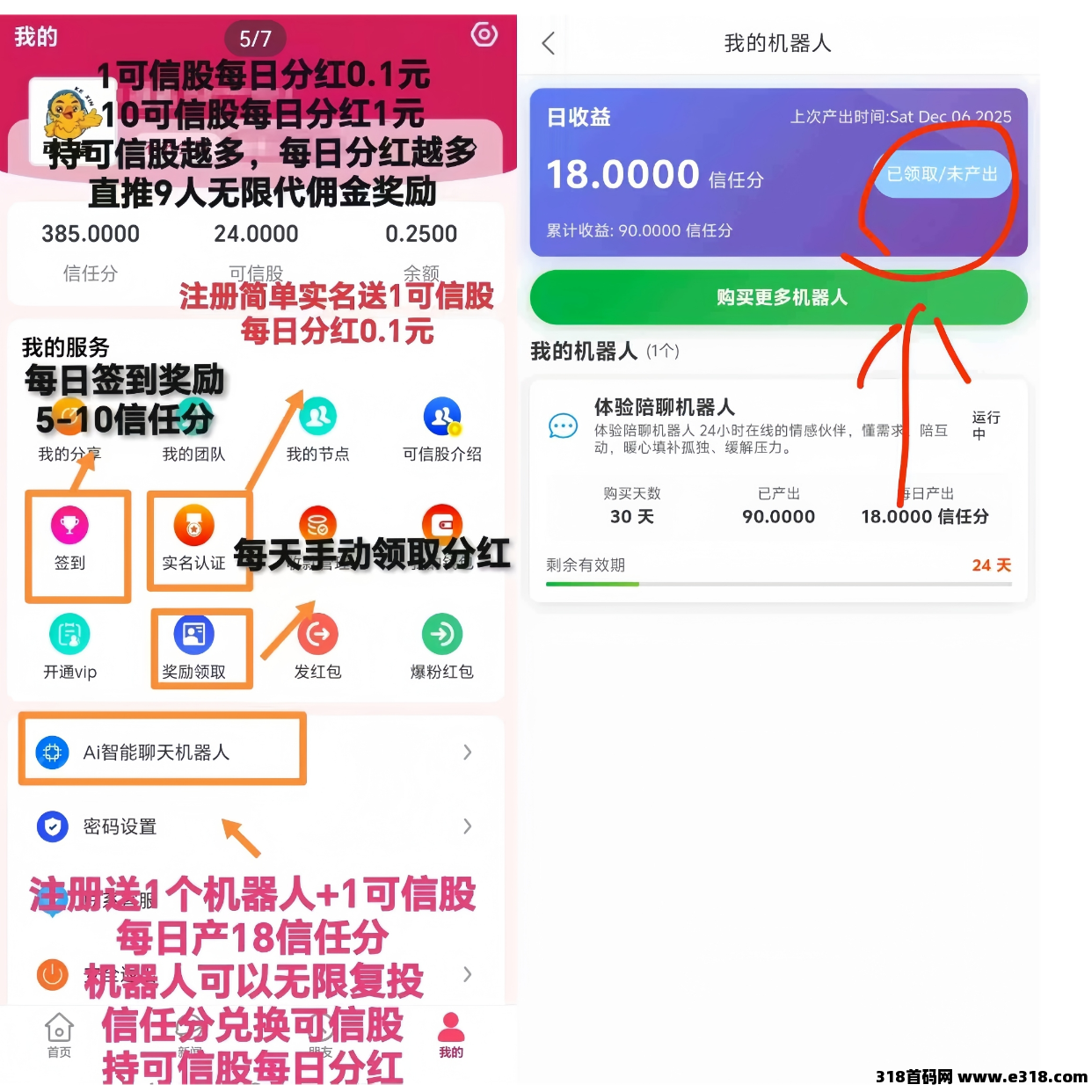 机器人每日可以产出18信任分,每天签到奖励5-10信任分,看视频可获得50信任分,分享好友奖励1000信任分,信任分可以直接兑换可信股!