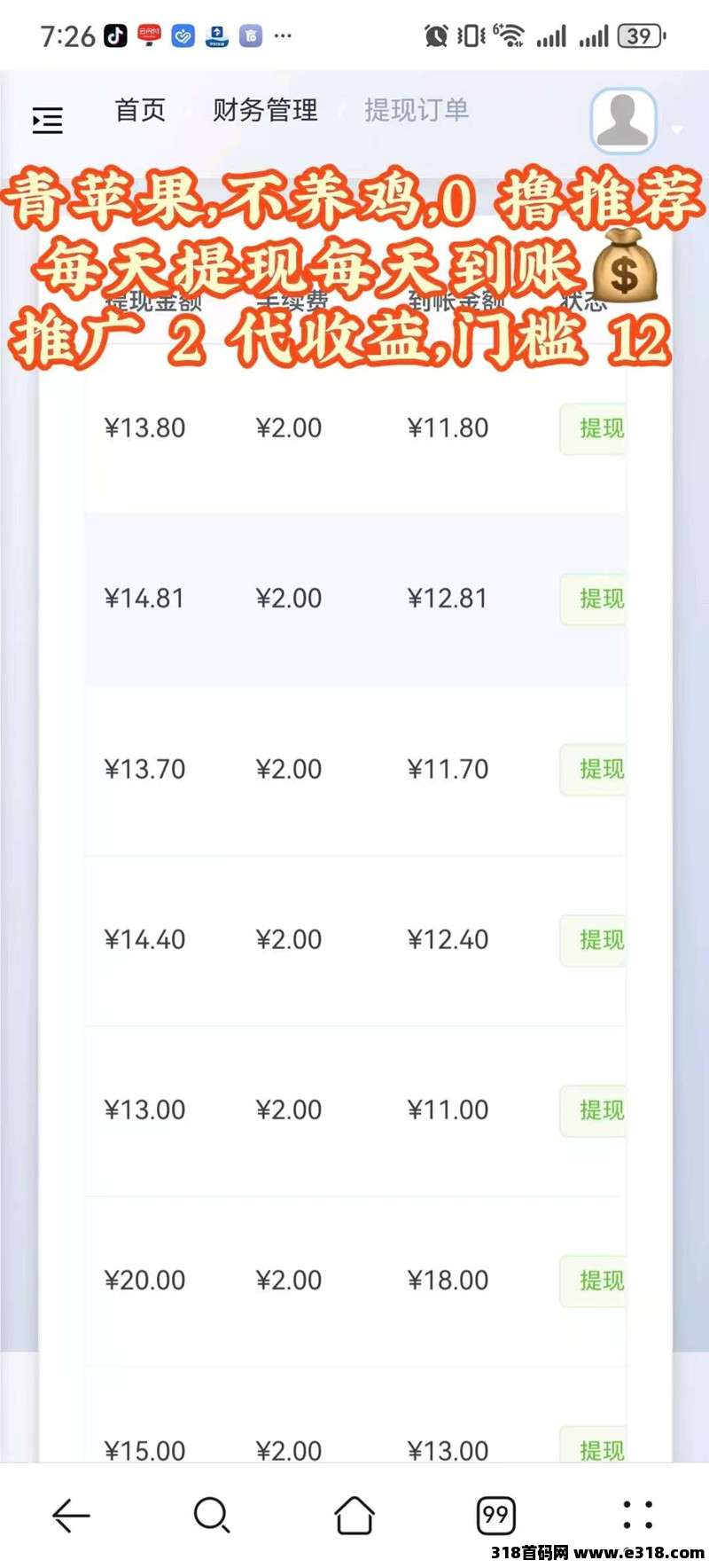 首码上线青苹果,这是一款无需养机的简单看广告项目!已亲测提现到账!