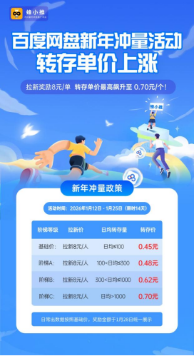 “蜂小推”作为百度网盘官方一级服务商,能帮新手推广达人跳出规则迷茫、快速上手,获取正规推广权限和实时数据反馈,是省心起步的好助力。