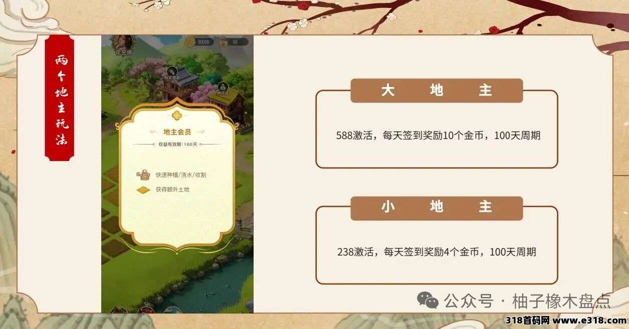 地主卡238小地主卡:100天产出400金币