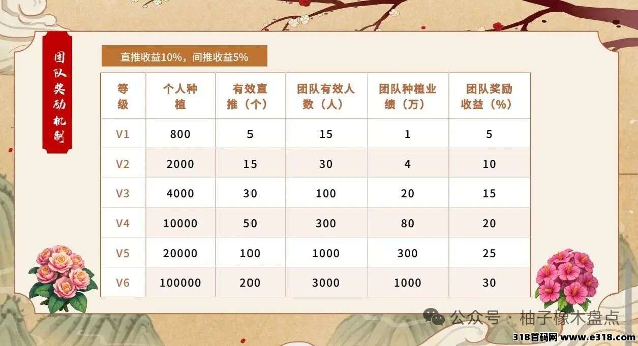 团队奖励机制机制从V1到V6星级奖励,团队越大,收益越多