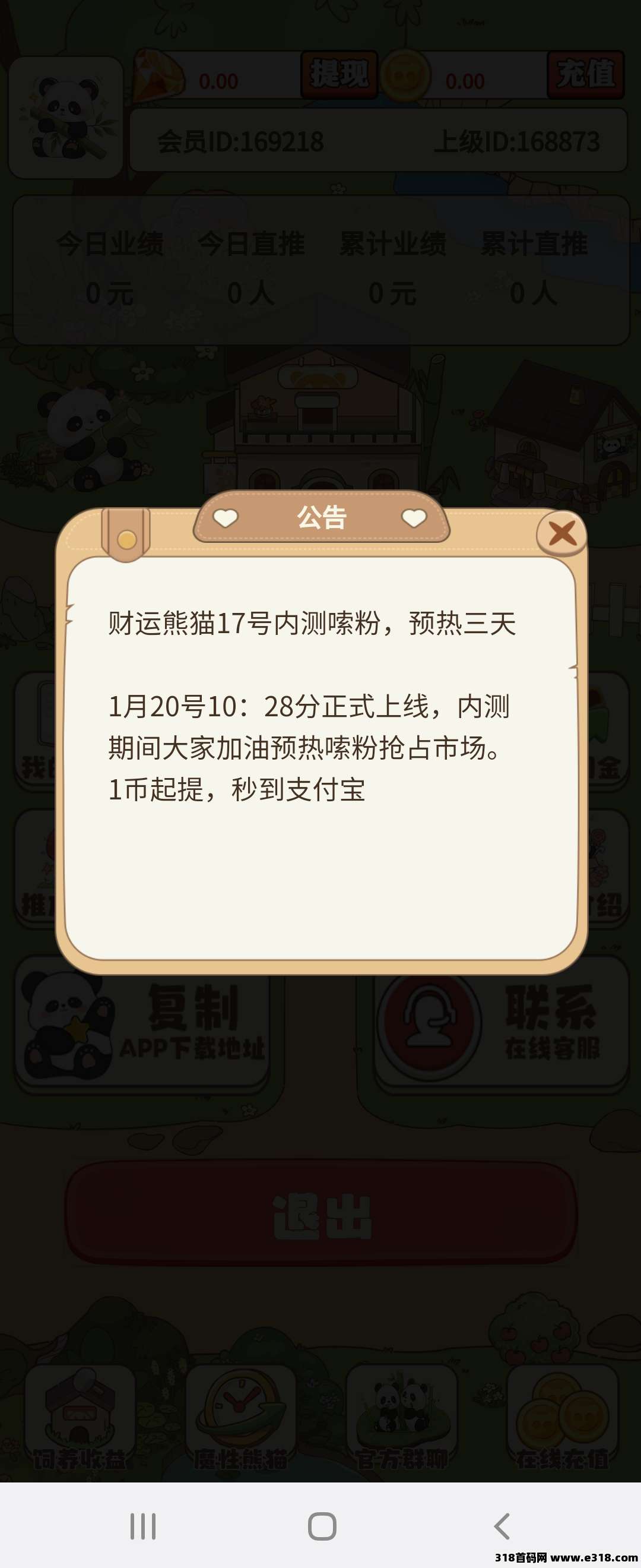 团队领导人驻扎公司,财运熊猫是上市公司,1月20日火爆上线!动态1级5%,2级2%.1元起提现秒到账,无手续费,零撸神
