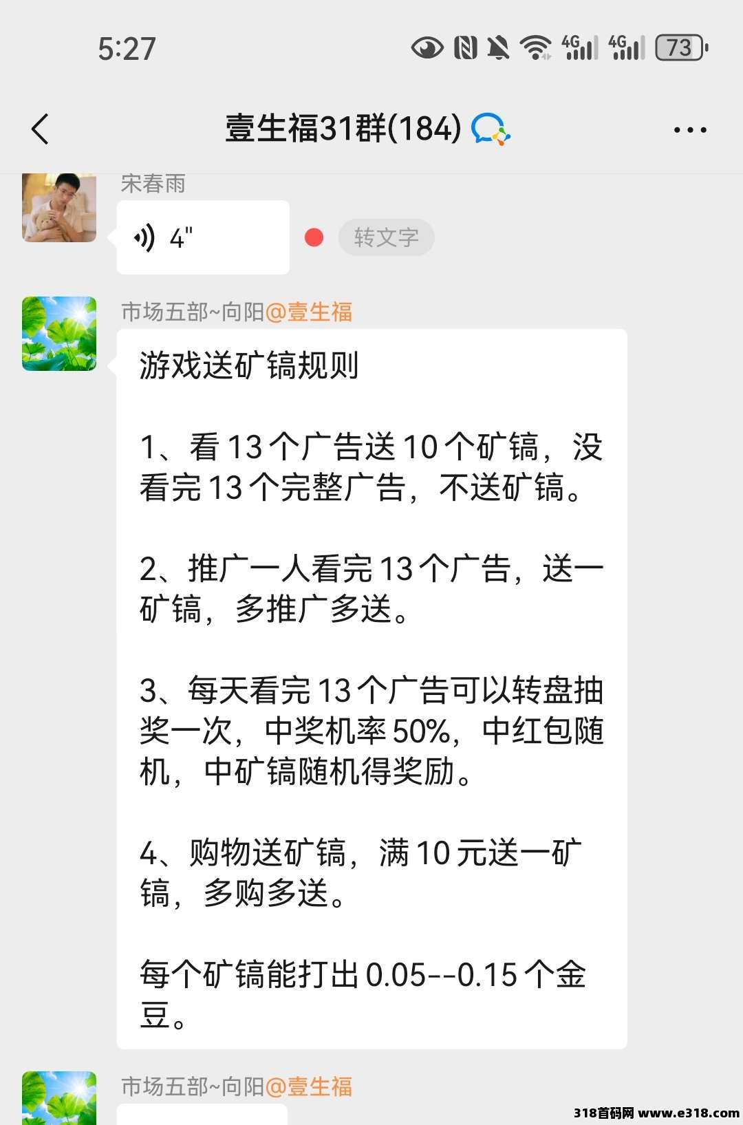 新版本每天看完13个广告,除了获得12层广告收益,额外赠送10个矿镐和转盘抽奖可以中现金奖励,每天10矿镐打出0.5-1.5米保底收易,网体活跃度每天在增加一天比一天高,网体收易新版本直接起飞,新版本已经更新完毕。