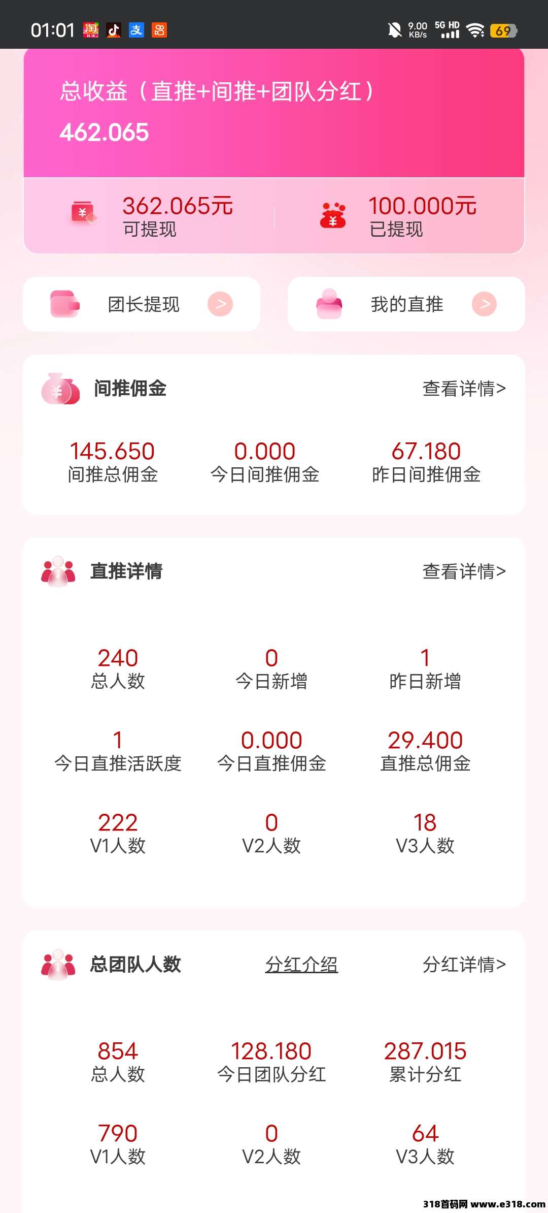 v3团长**每天零点自动分到余额可在团队后台最下面能看到,还没上车的直接下载上车 ,升v3的兄弟直接私发id给我直接升,一个人也不推也能直接私我开v3但是要有下级才能每天有**