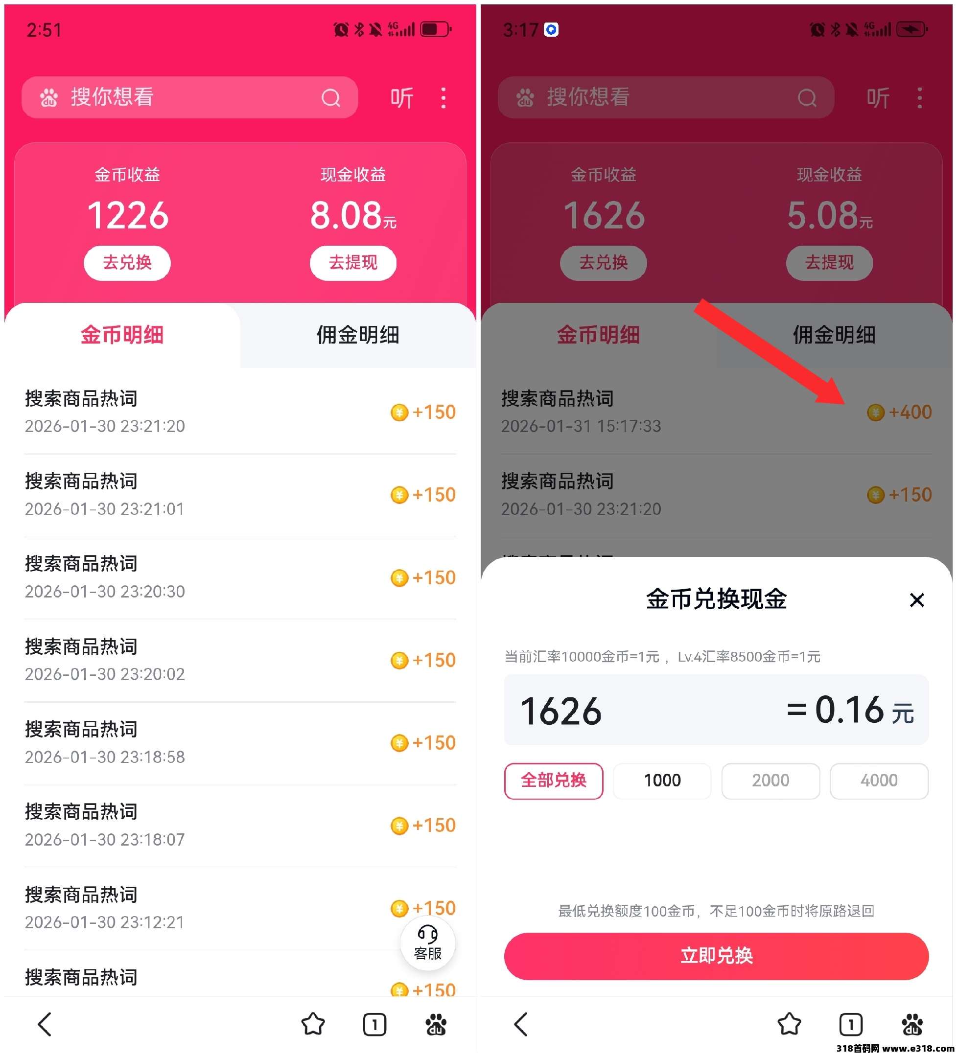 金币收益直线上升。目前一天做完所有搜索任务可以获得2.8元。