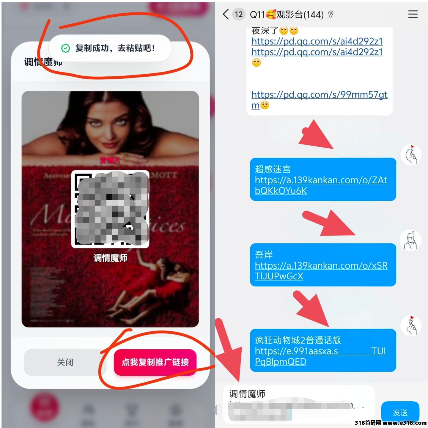 分享电影、电视剧、短剧链接……有点击就有收益!