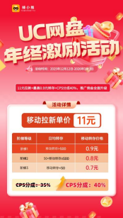 UC网盘年终拉新激励正酣,移动端11元/单、转存最高0.9元/次,不少人只顾短期刷屏赚佣金,活动落幕收益便归零。其实年终激励是搭建长期收益的窗口,借助流量红利做好用户留存、资源维护和会员转化,就能实现一次推广、长期受益,普通人也能稳步增收。