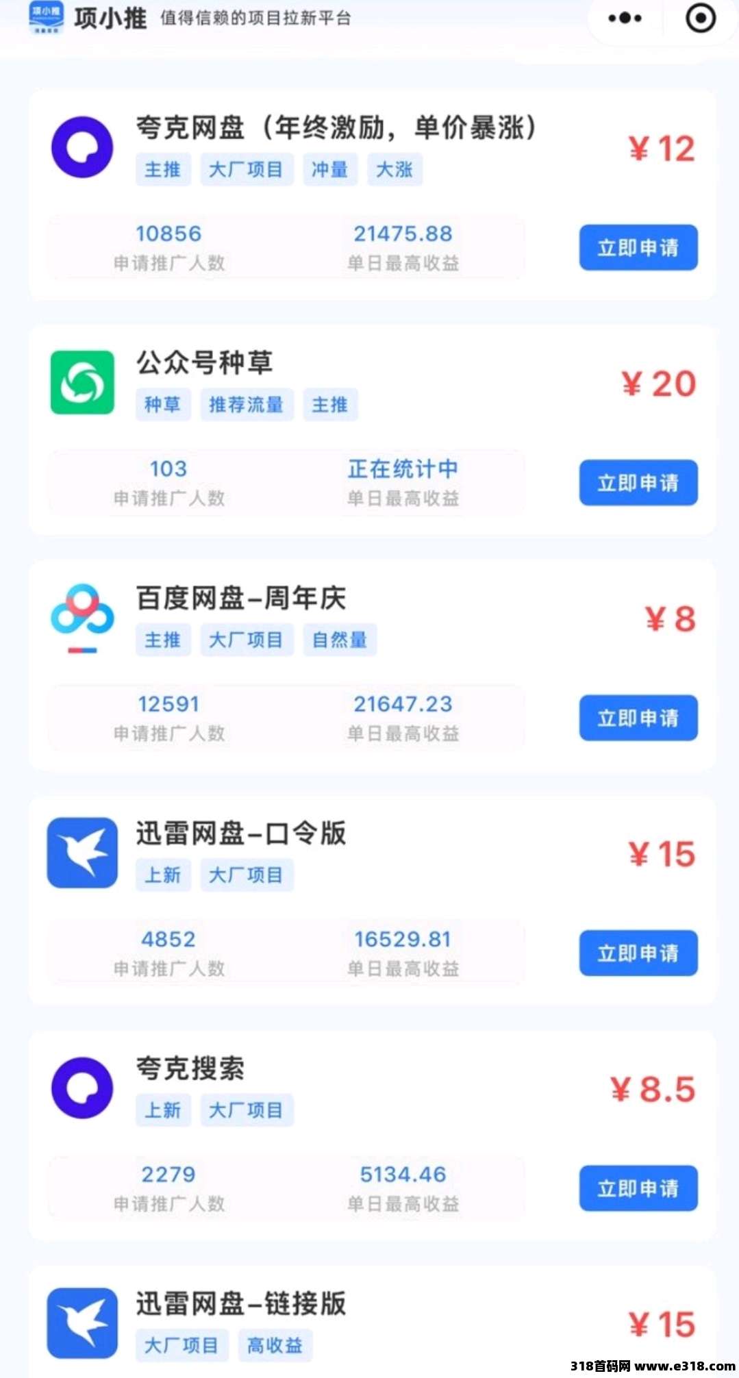 项小推是一个资源整合型变现平台,主打应用拉新,尤其是网磐拉新这一块。它并不是中间商,而是直接对接多家网磐管方的服务商。