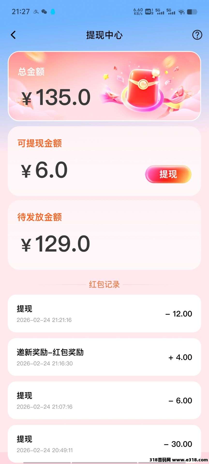 注:收益需过48小时后才能提现