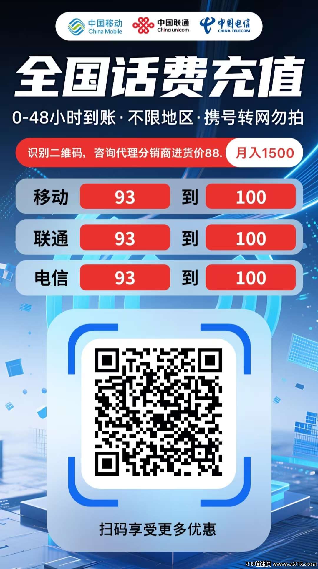 拿货80-88折,平台以93折每天帮你代售,自己也可以帮别人代充,每冲100话费店长有5~13米差价(等级越高,拿货价格越低,开通店长进货价低至82.5折 过年过节有限时活动低至8折)