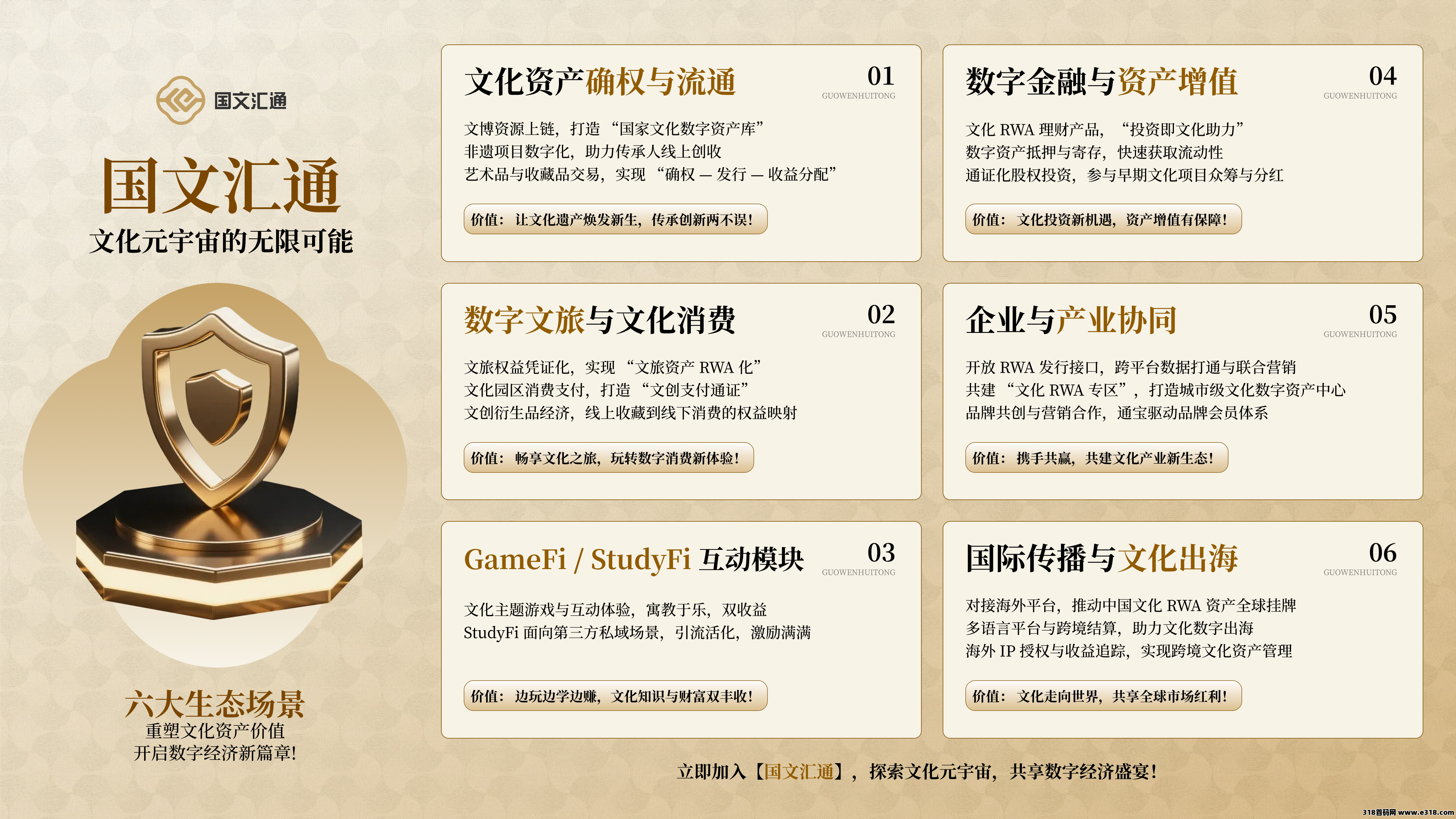 1:国文汇通:文化数字资产+实体托底,主打文博/非遗/文旅IP上链,数字资产可兑换实体/文旅权益。