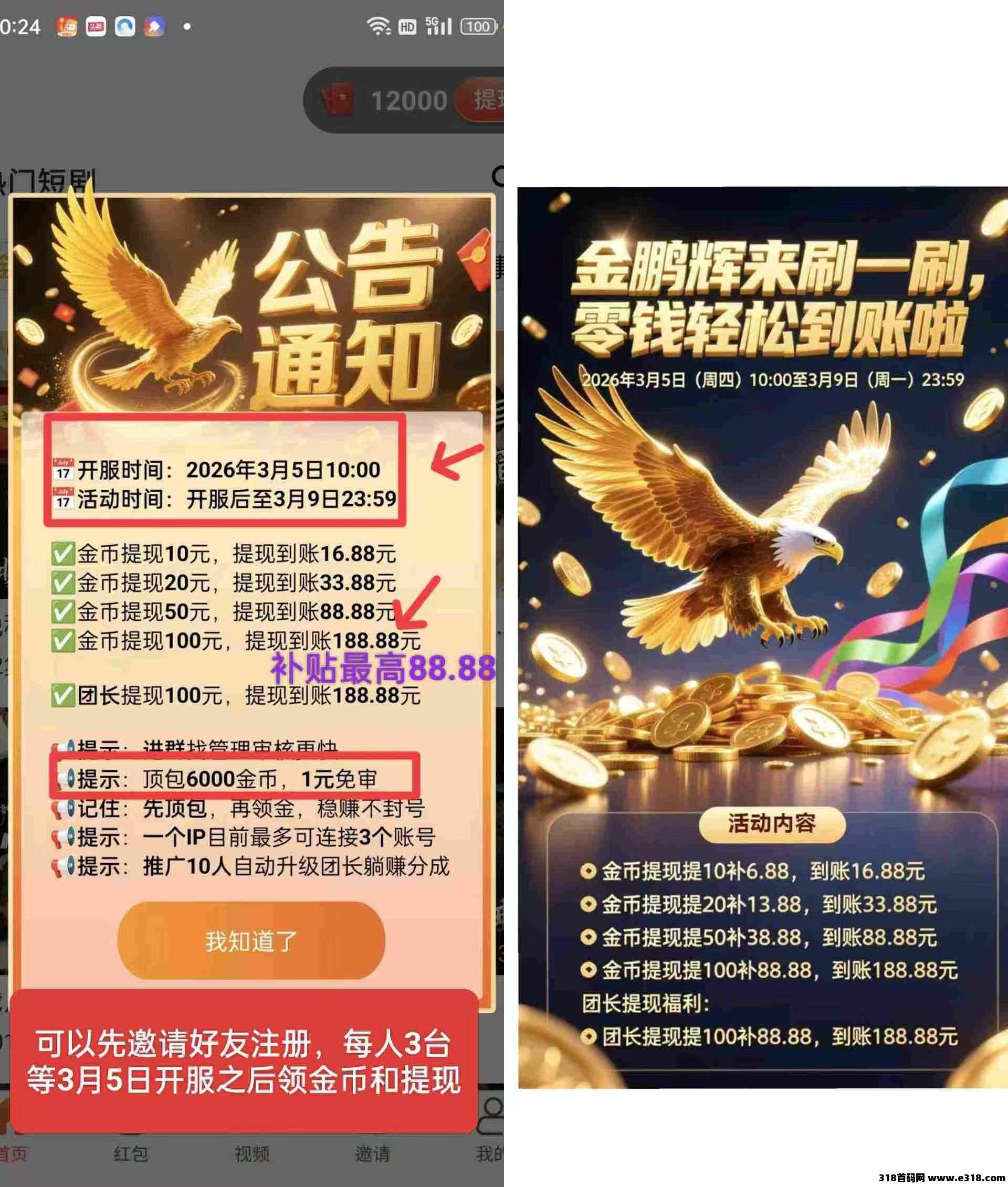 鹏辉首码刚出!零撸看广告,不养机,收益稳定