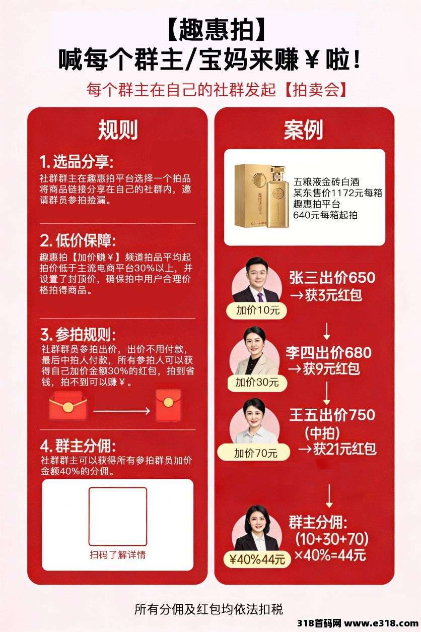 趣惠拍~3月初火爆震撼登场,千年难遇的正规竞价电商平台,团长O费用参与,股东技术团队来自前阿里拍卖,唞音,1688,好省,云集 等高管,感召首期伙伴一起共享財富盛宴!