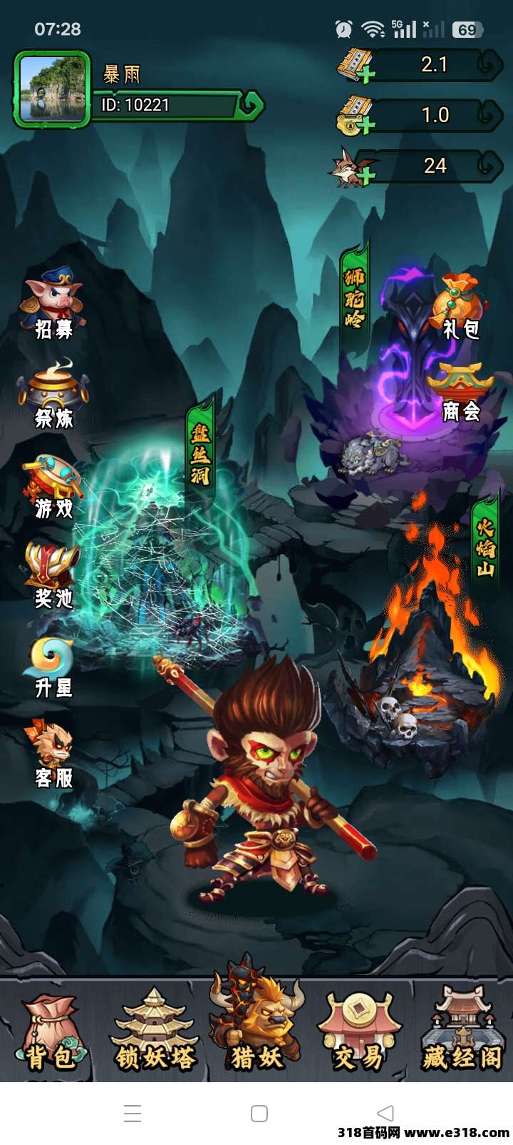 2 卡:限量发售:沙僧卡(20经书每天产1个小妖), 八戒卡(80经书每天产4个小妖)