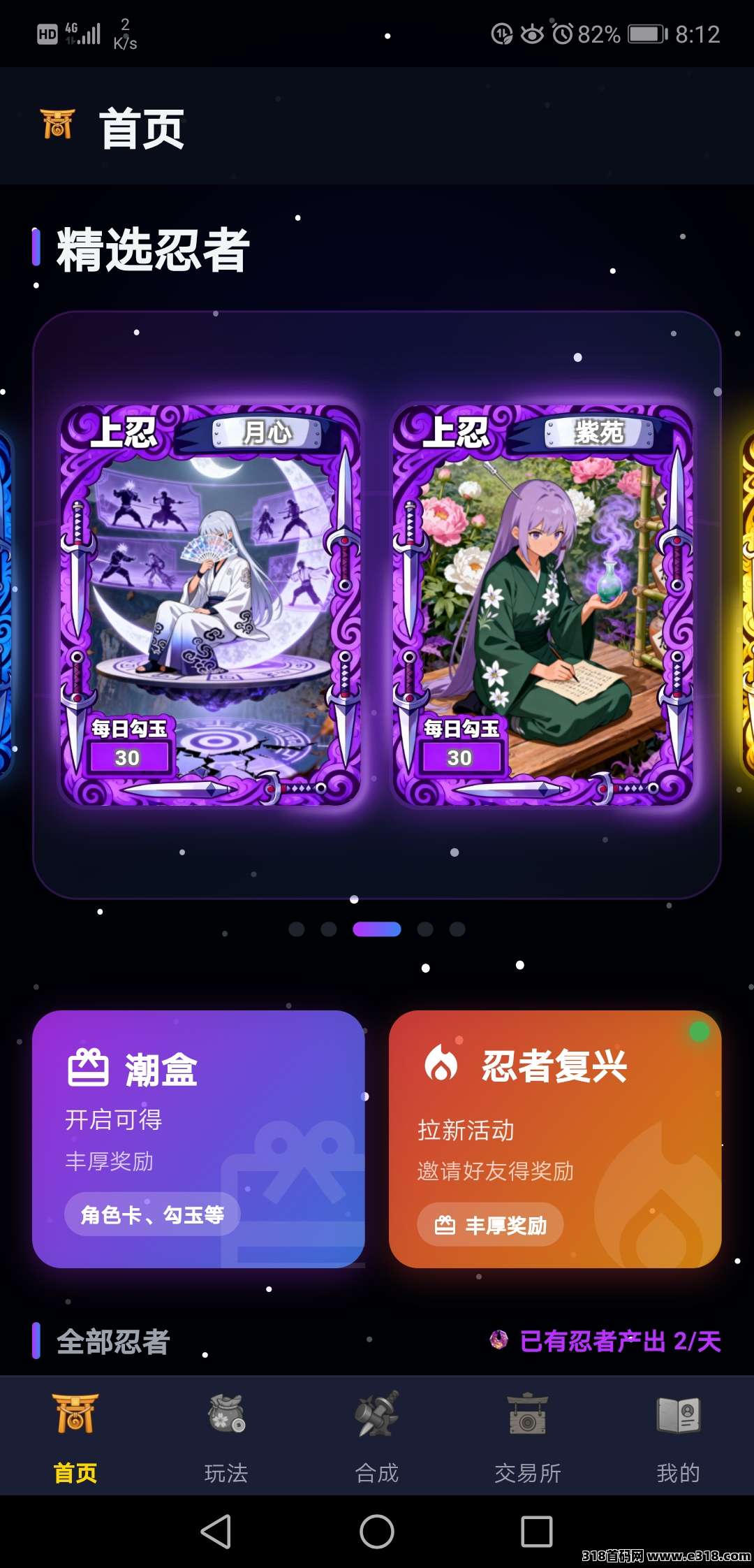 《造梦忍者》是一款忍者主题手游,iOS和安卓均可参与。每个低级忍者日产2玉,价值4米,永久产出,目前一玉难求,一个起收,手续费5~10%