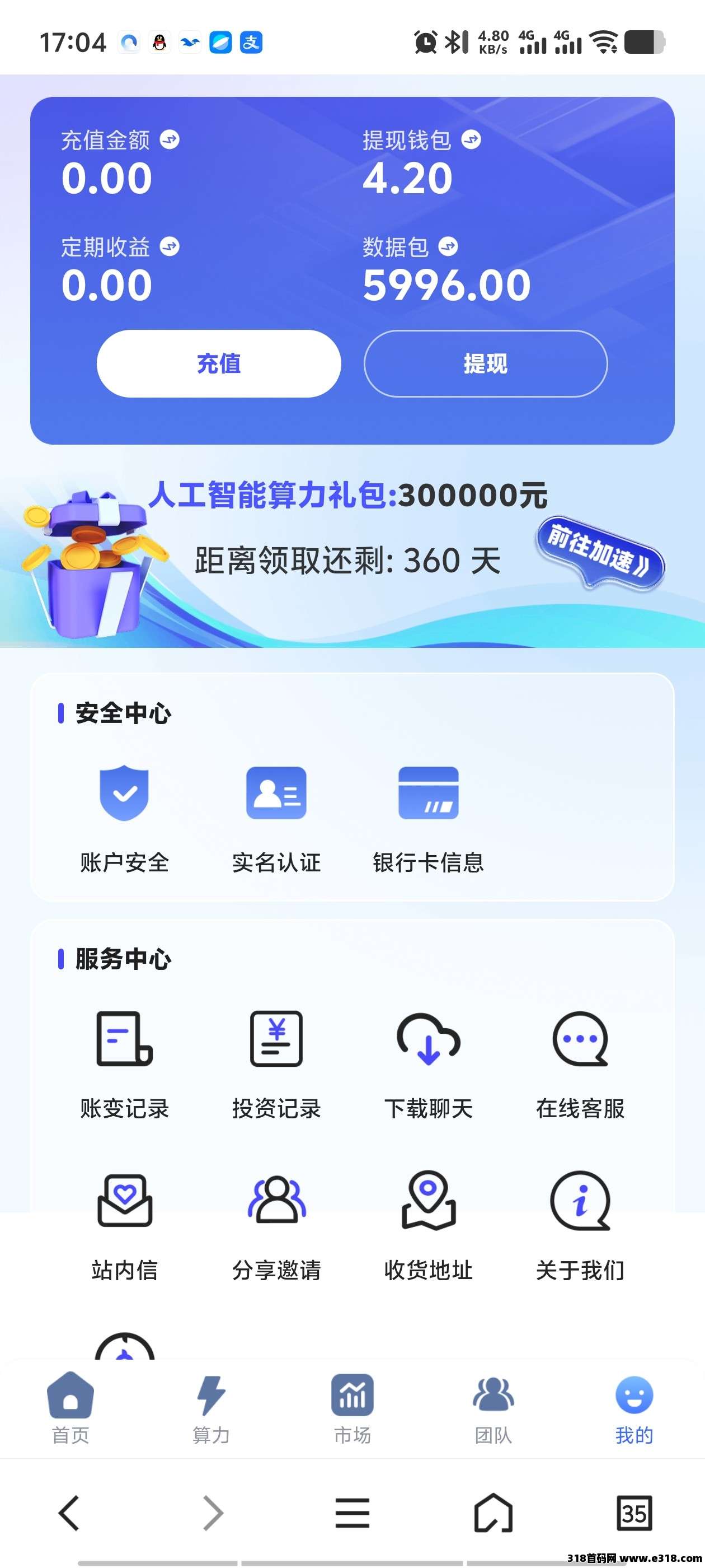 首码人工智能,实名普通正反,通过后每天首页~贡献算力,看视频进度条满了就可以。再点开市场,每天可卖一次数据包,释放4到5元,100起提