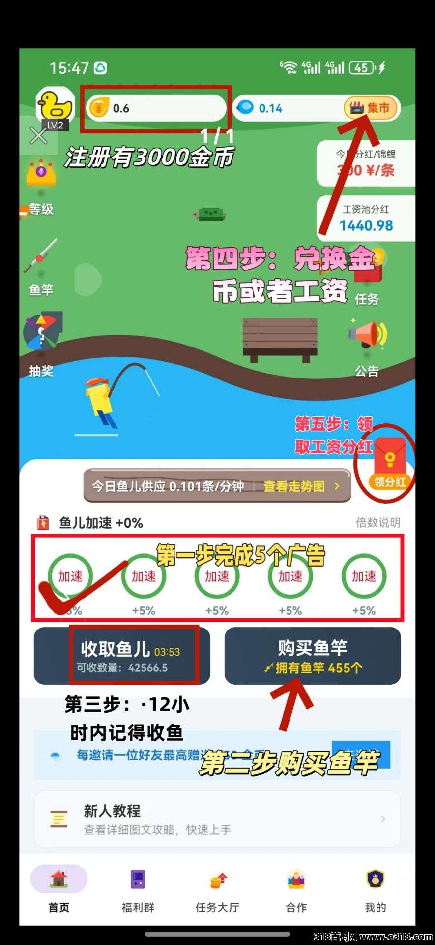 零撸鱼塘,钓鱼看5个广告增加倍数,鱼换米。适合宝妈,学生零撸。