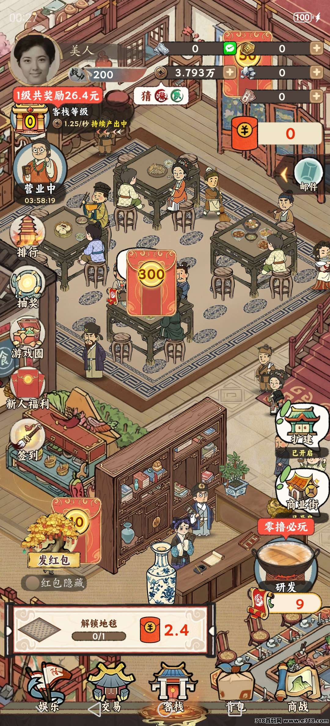 淘金城镇模式,去做菜,升级客栈,完成任务后领红包,还可抢红包,红包到手立即提现,很简单