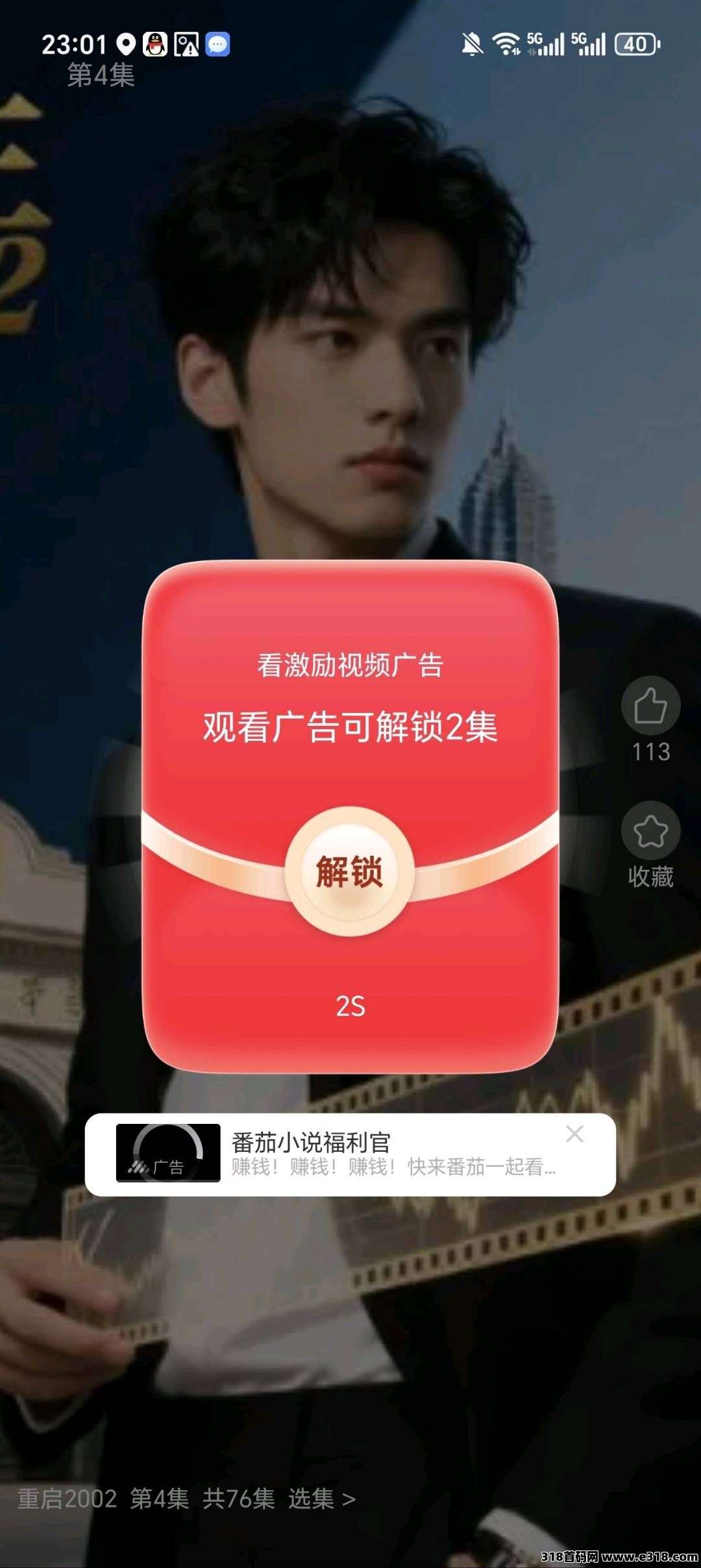 点开剧场选集解锁看广告得金币