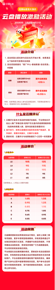拉新收益:拉新等级L1-L5,活动期间新单价在原单价上涨2元,最高12元,注意的是L6(12元)和L7(15元)无额外加成。