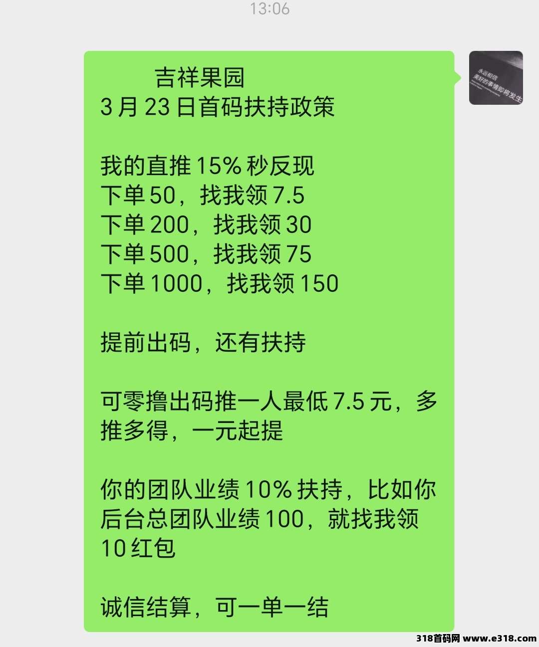 团队领导人驻扎公司,吉祥果园是上市公司,3月23日火爆上线!动态1级5%,2级2%.1元起提现秒到账,无手续费,零撸神盘。