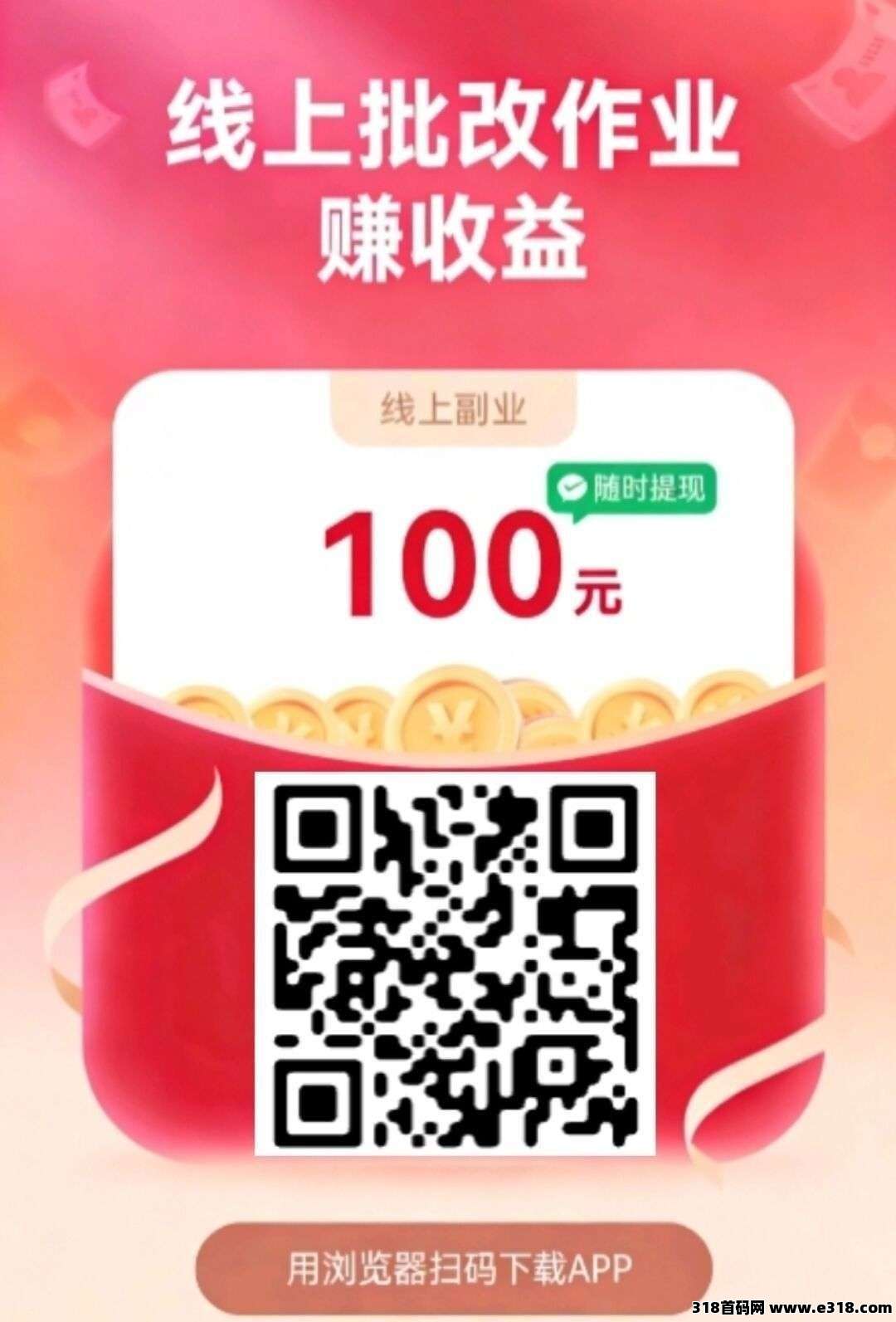 下方图片有平台邀请码,用浏览器扫码下载APP即可批改作业赚钱