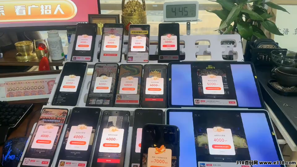 看广告:单机一天20-50,10台手机200-500,可批量矩阵。