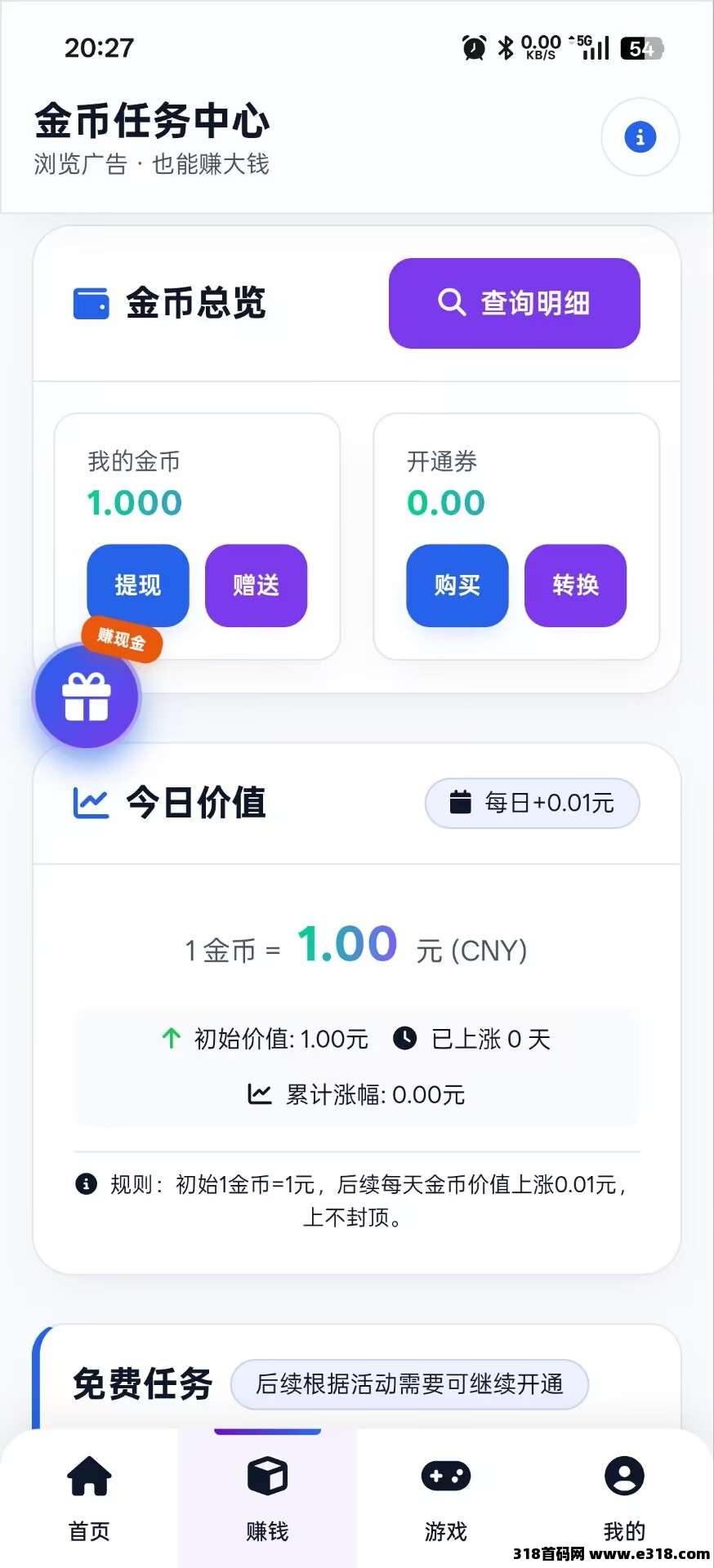 收益1金币=1元,满10个金币提现秒到。