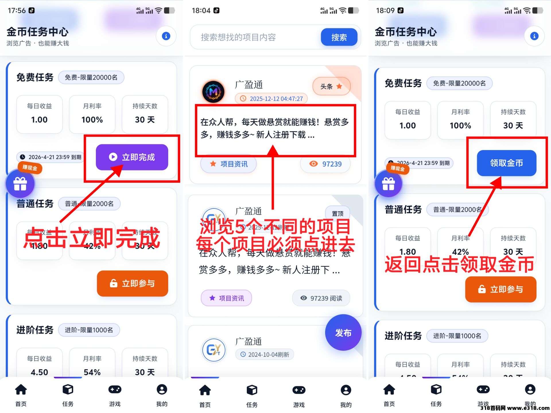 《广盈通》零撸每天浏览5个项目,新品上线,保底收益,拉新奖励