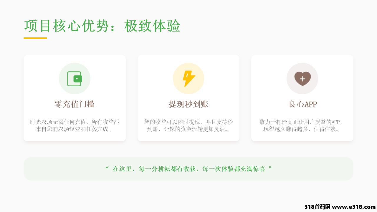 时光农场是一款模拟经营农场种植APP,玩家扮演农场主,开垦土地、购买种子播种,作物成熟后收获并卖出,用于扩张农场、换取道具等红包收益,时光农场还提供了多种有趣的玩法, 为玩家提供了投资和娱乐相结合的机会。通过多元化的玩法和实时提现的特色,吸引了众多玩家的关注。立即加入时光农场,体验经营农场的乐趣,获取丰厚的收益