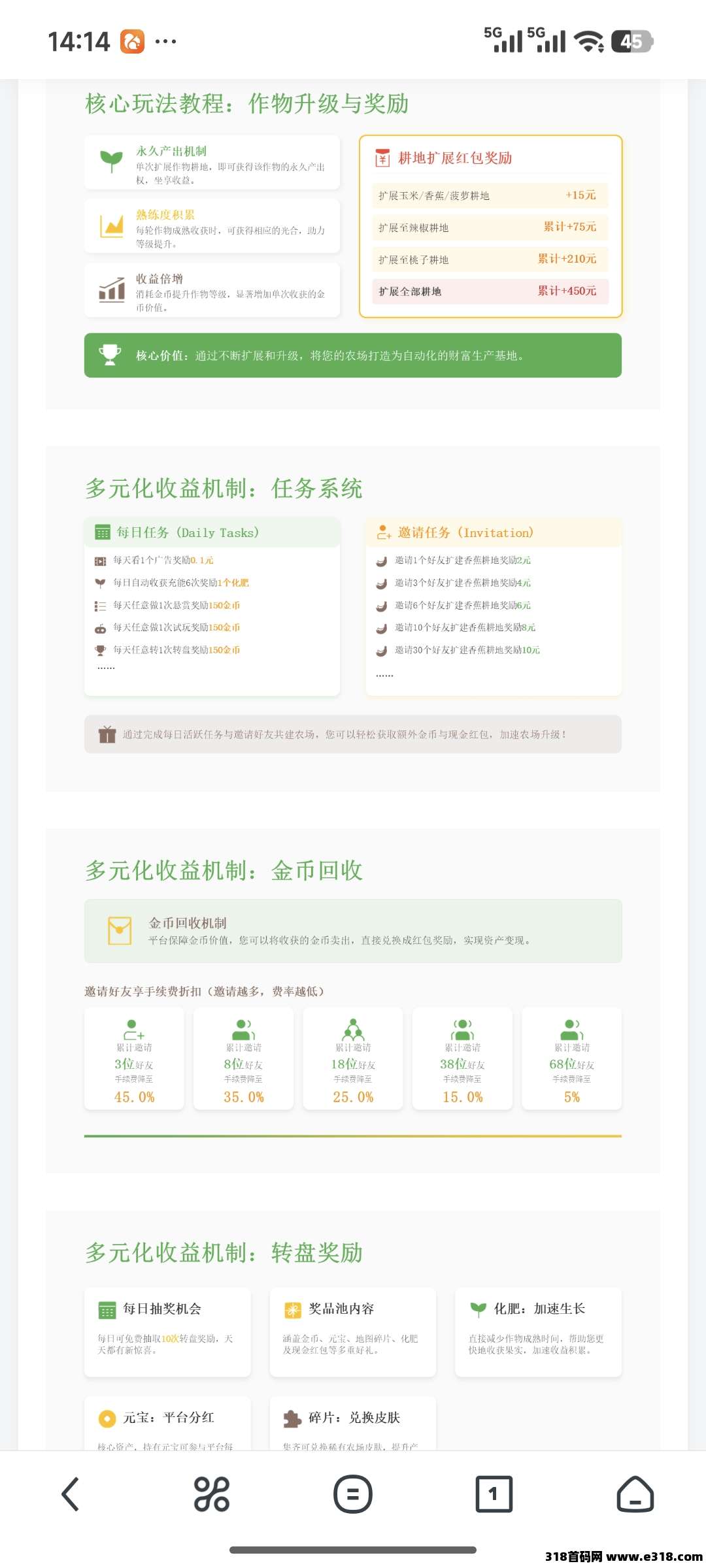 时光农场是一款模拟经营农场种植APP,玩家扮演农场主,开垦土地、购买种子播种,作物成熟后收获并卖出,用于扩张农场、换取道具等红包收益,时光农场还提供了多种有趣的玩法, 为玩家提供了投资和娱乐相结合的机会。通过多元化的玩法和实时提现的特色,吸引了众多玩家的关注。立即加入时光农场,体验经营农场的乐趣,获取丰厚的收益