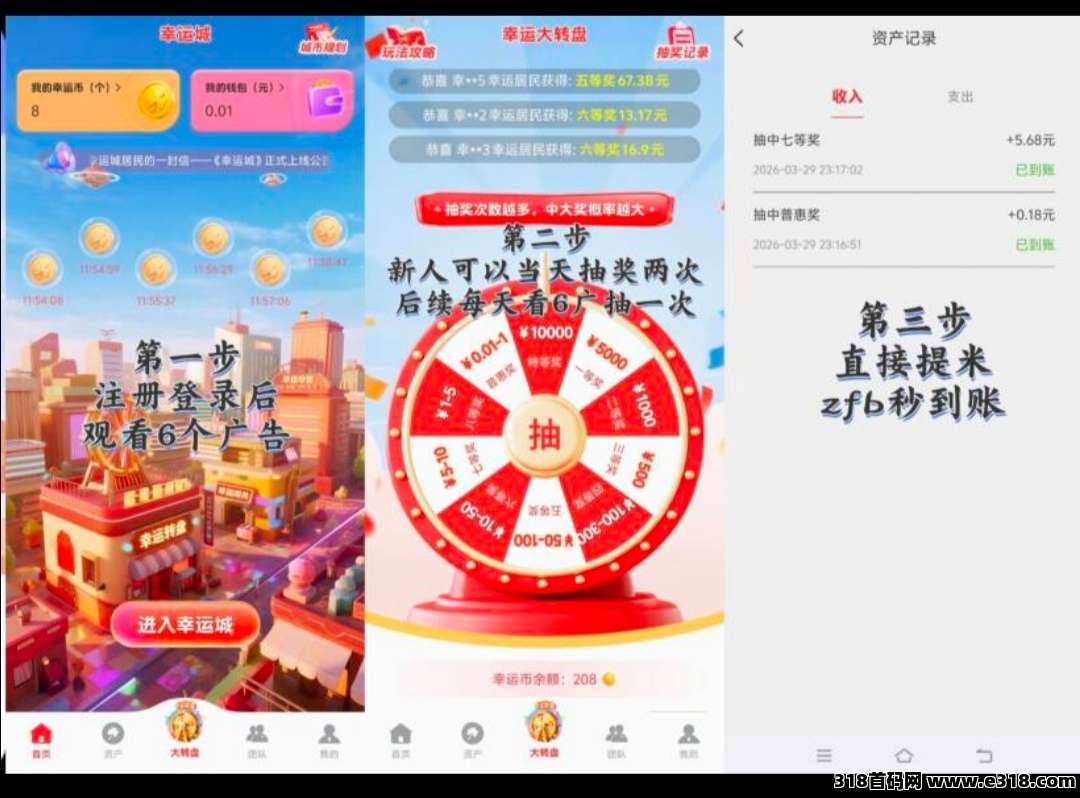 幸运城不仅仅是一个“百分百中奖的App”,更是一次温暖的商业实验-一我们把从品牌方获得的广告收入的90%,全部放进奖金池,通过大转盘等互动游戏,随机地、公平地分配给幸运的你。