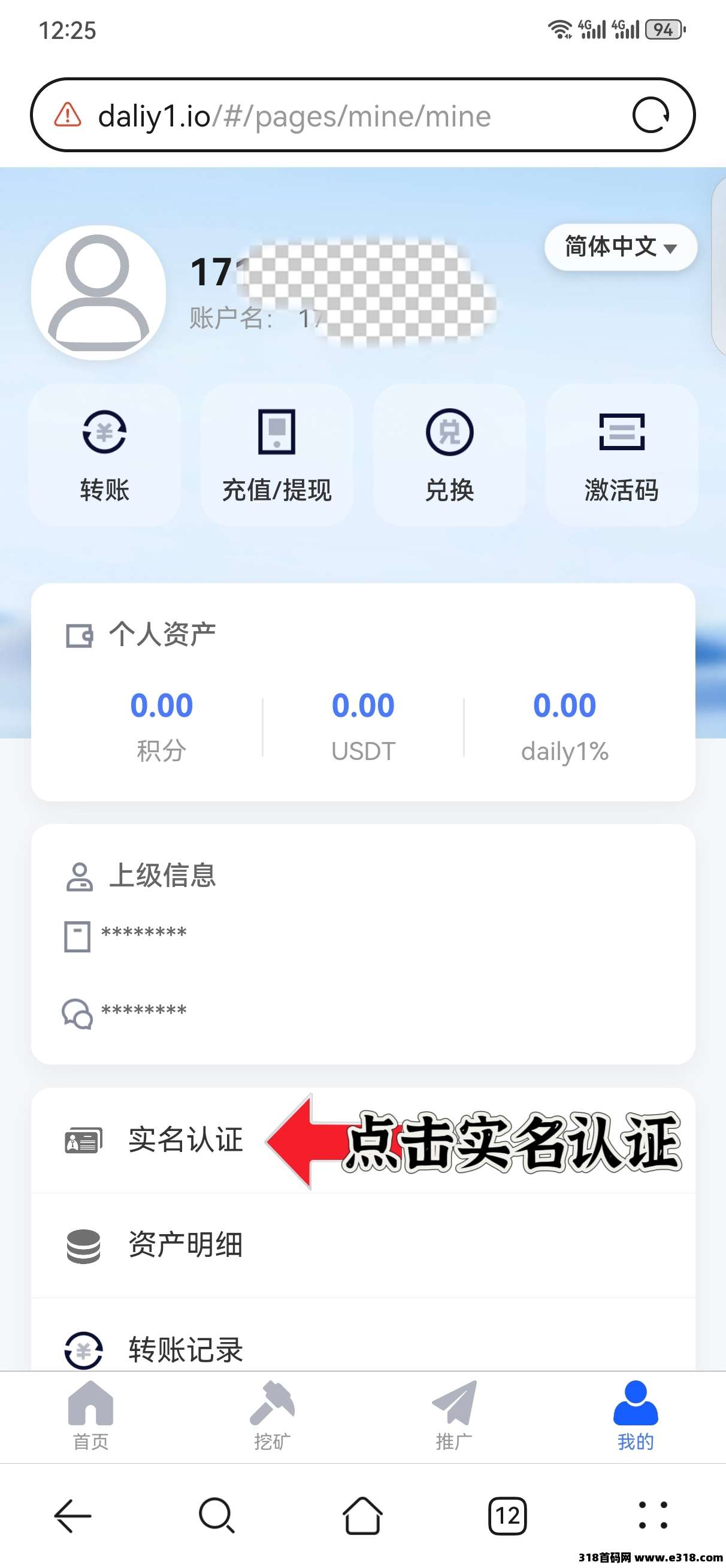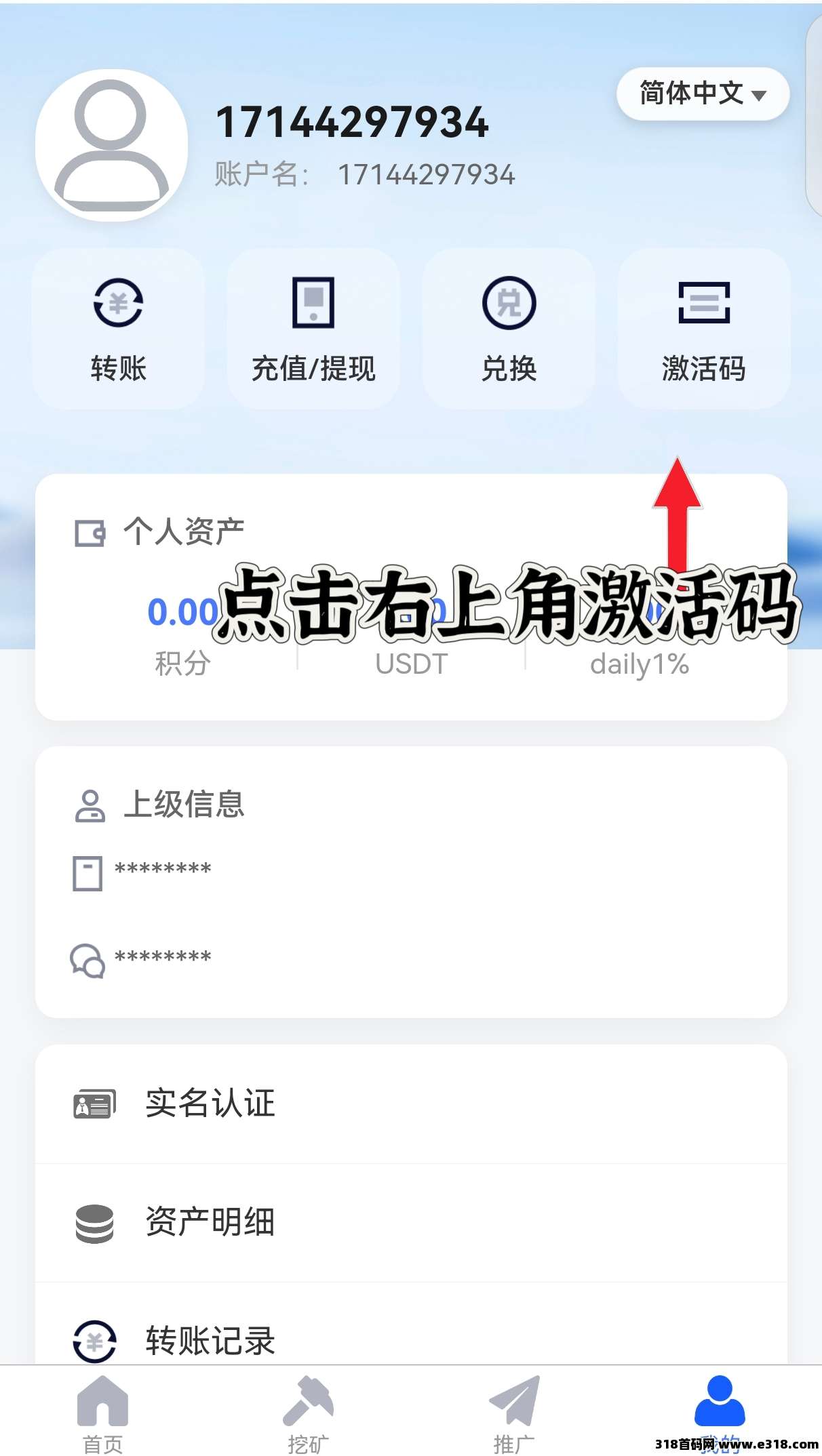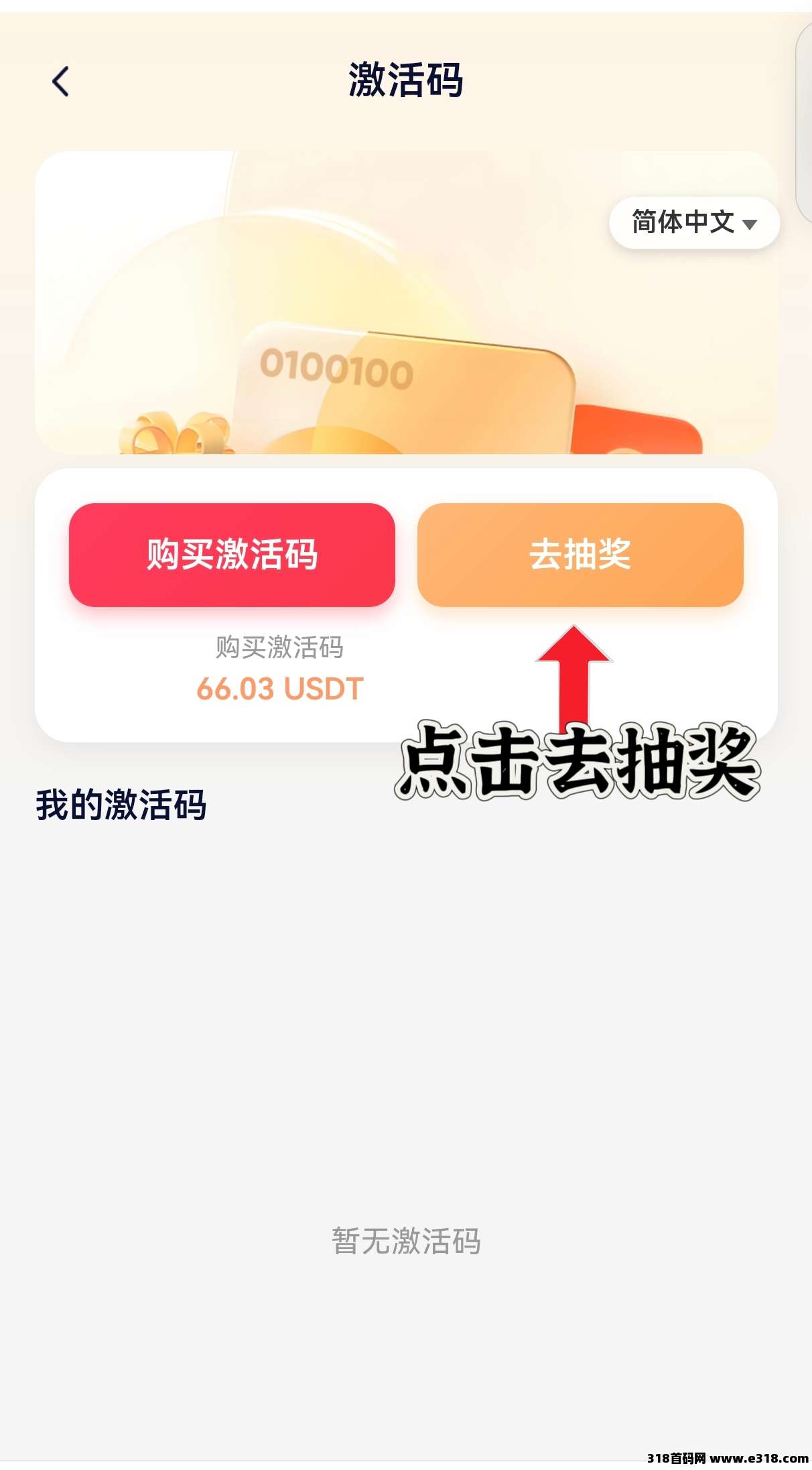 第四步:实名认证之后,点击右上角“激活码”。点击抽奖,抽矿池激活码。