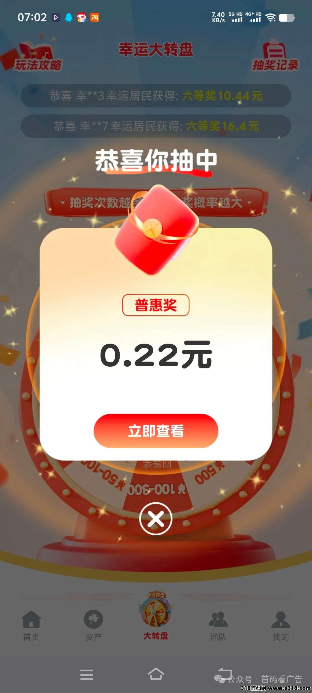 幸运城,零撸广告赚,保底收益高,不养机,看广告得幸运币