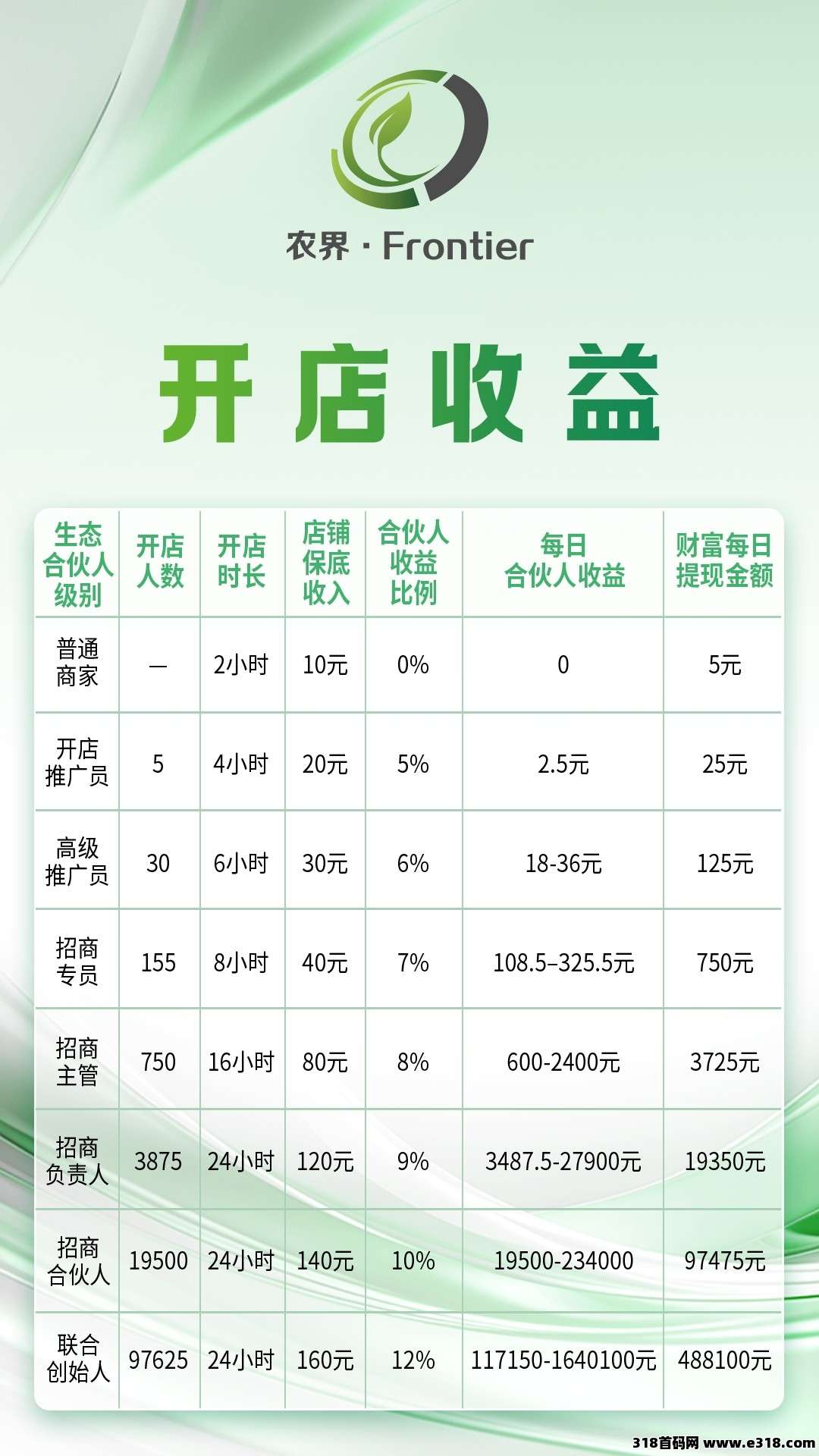| 免责声明:合作之前建议签订合同,318首码网作为信息共享平台无法对信息的真实性及准确性做出判断,不承担任何财产损失和法律责任,若您不同意该提示,请关闭网页且不要在本站拓展任何合作,否则造成的任何损失由您个人承担。 | |