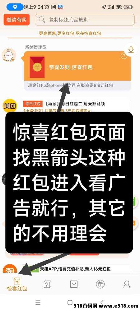 惊喜红包,纯刷广告,自动打款。每完成一个广告任务,就打款一毛钱,轻轻松松赚点零花。项目稳当,能长久干下去。