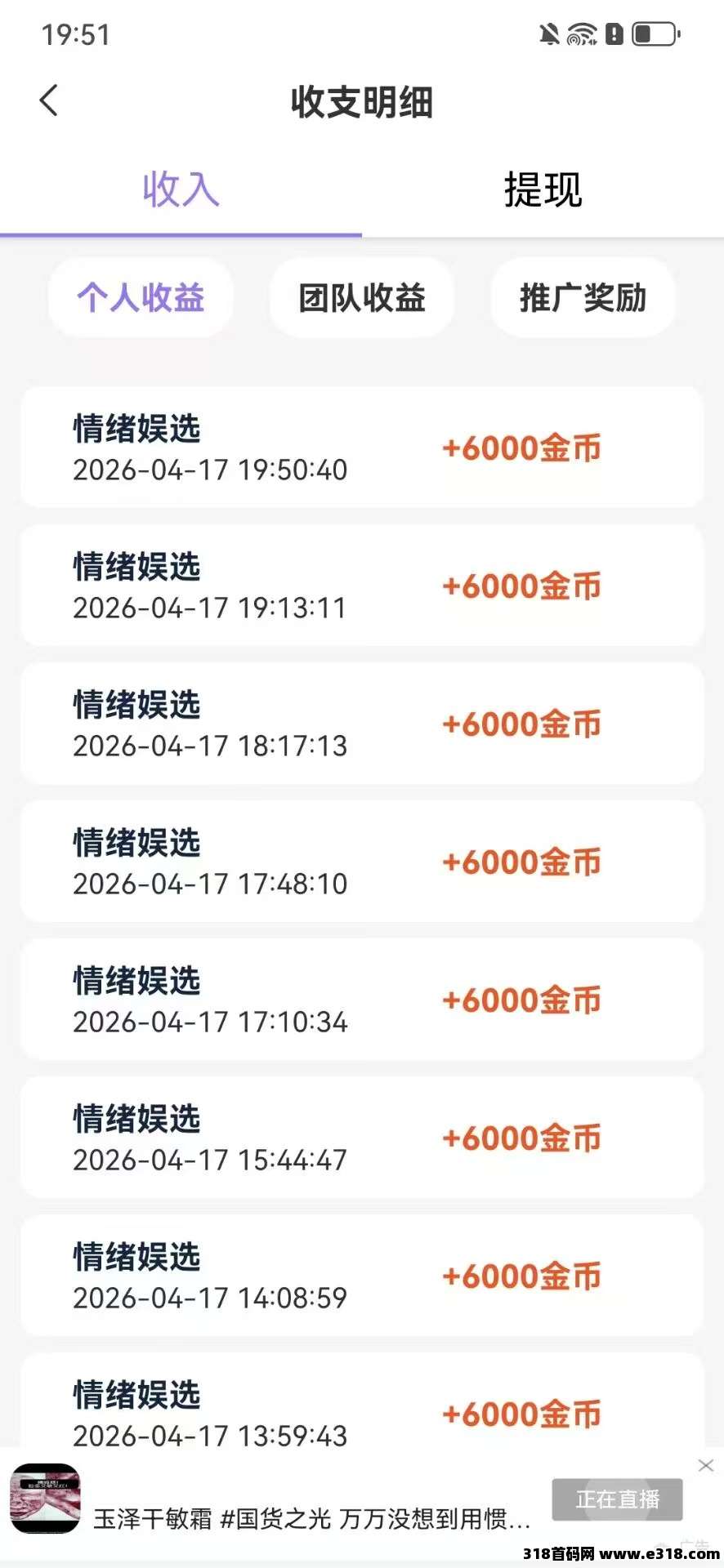 情绪娱选零撸广告,保底收益高,今日首码新品上线