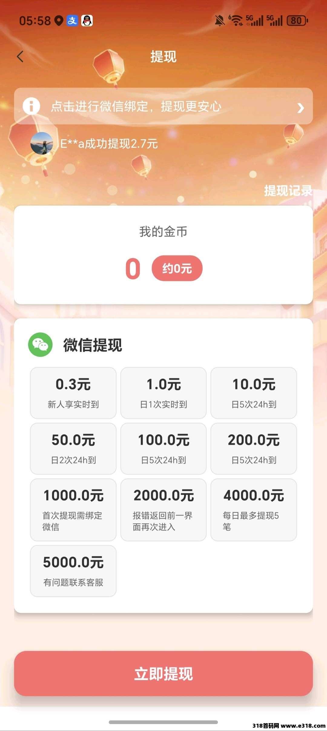 金币10000=1元,满0.3即可提现