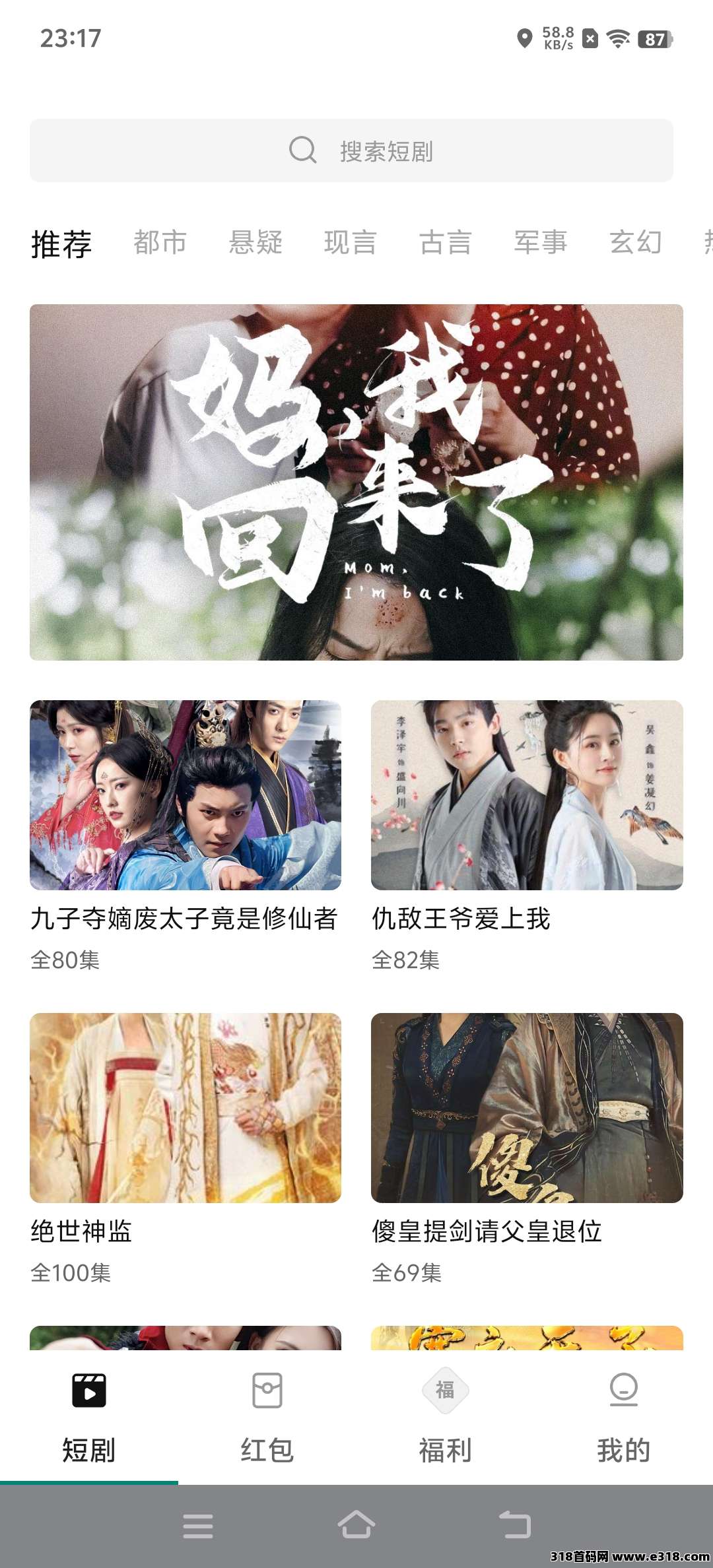 任务非常简单,看广告,就有收益,目前的板块分为短剧,红包和福利
