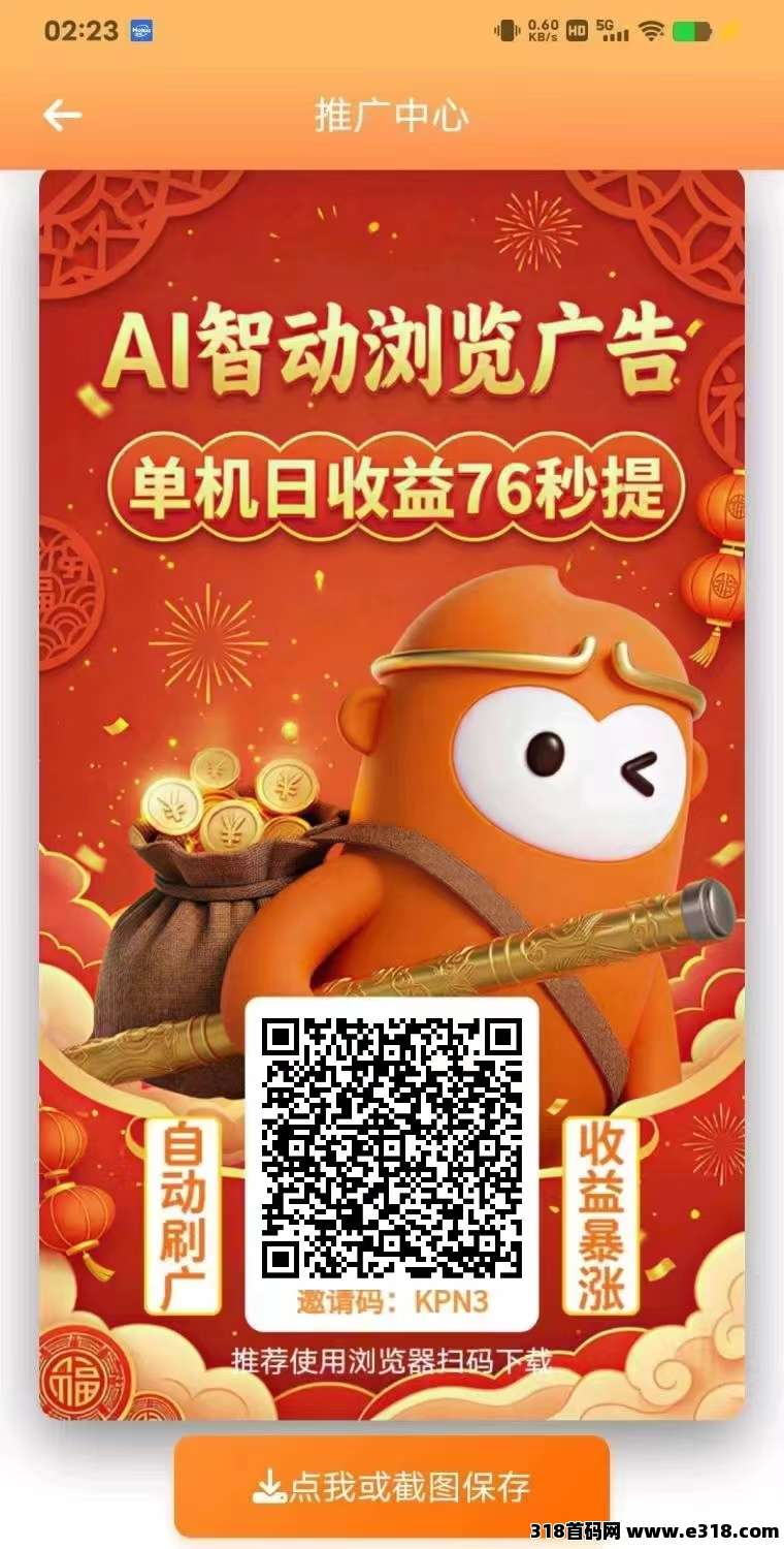 这台机器通过自动刷广告、下载软件跑量等方式全自动赚钱,完全不需要手动操作,放在后台运行就能轻松躺赚,真正释放双手。