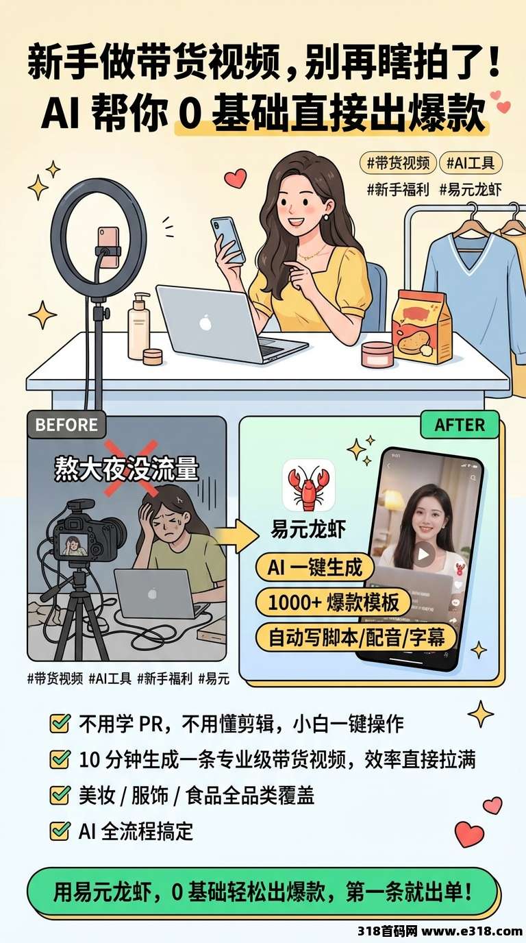 面向中尾部电商带货达人、个人创业者、 宝妈、副业主打「零门槛、高效率、高转化」的 AI 视频创作,核心差化:懂电商转化逻辑、适配个人创作者轻量化需求、全链路 AI 赋能。