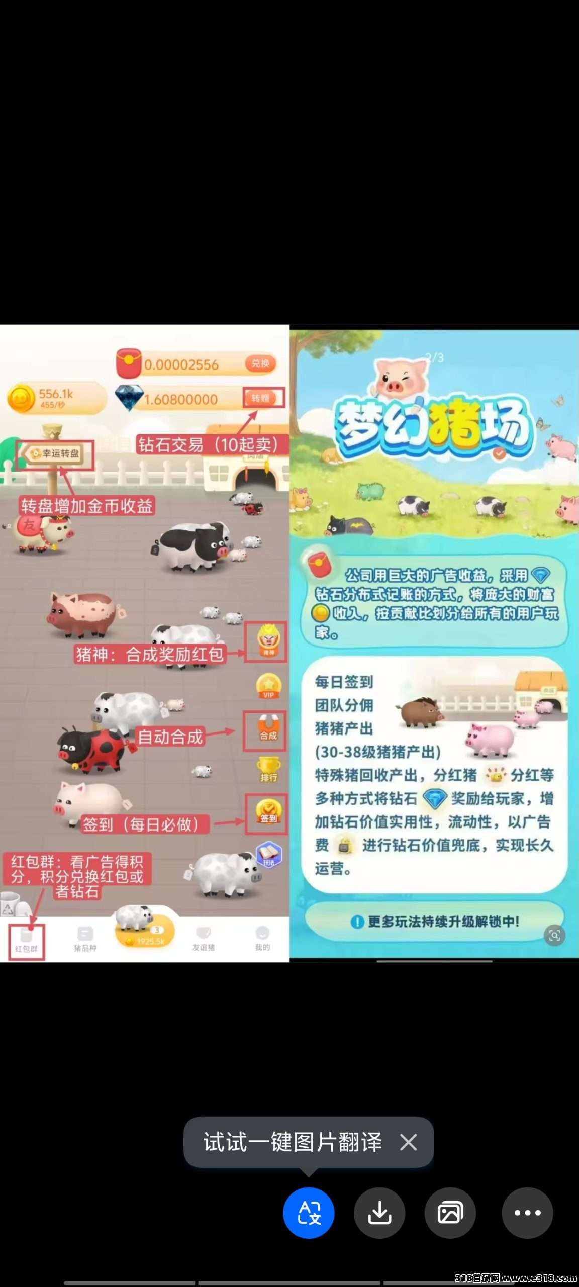赠手续费10%。看广告去合成到30-38级猪猪后产出钻石,回收特殊猪和**猪**得大量钻石。