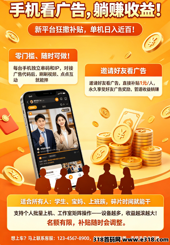 手机看广告,躺赚收益!新平台狂撒补贴,单机日入近百!
