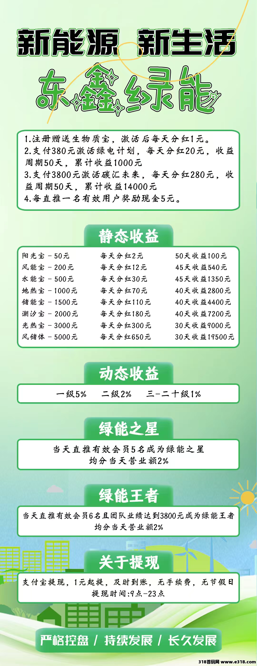支付380元激活绿电先锋,每天**20元,收益周期50天,累计收益1000元