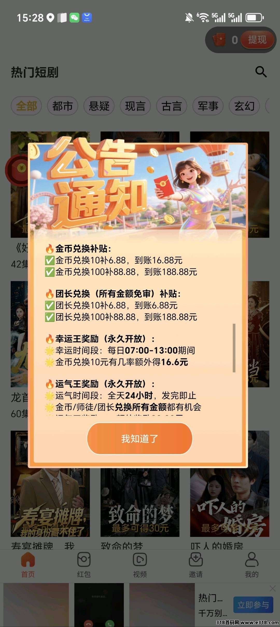 〖豫视宝〗零撸广告赚,保底收益,放水中,拉新奖励,邀请日入几十米