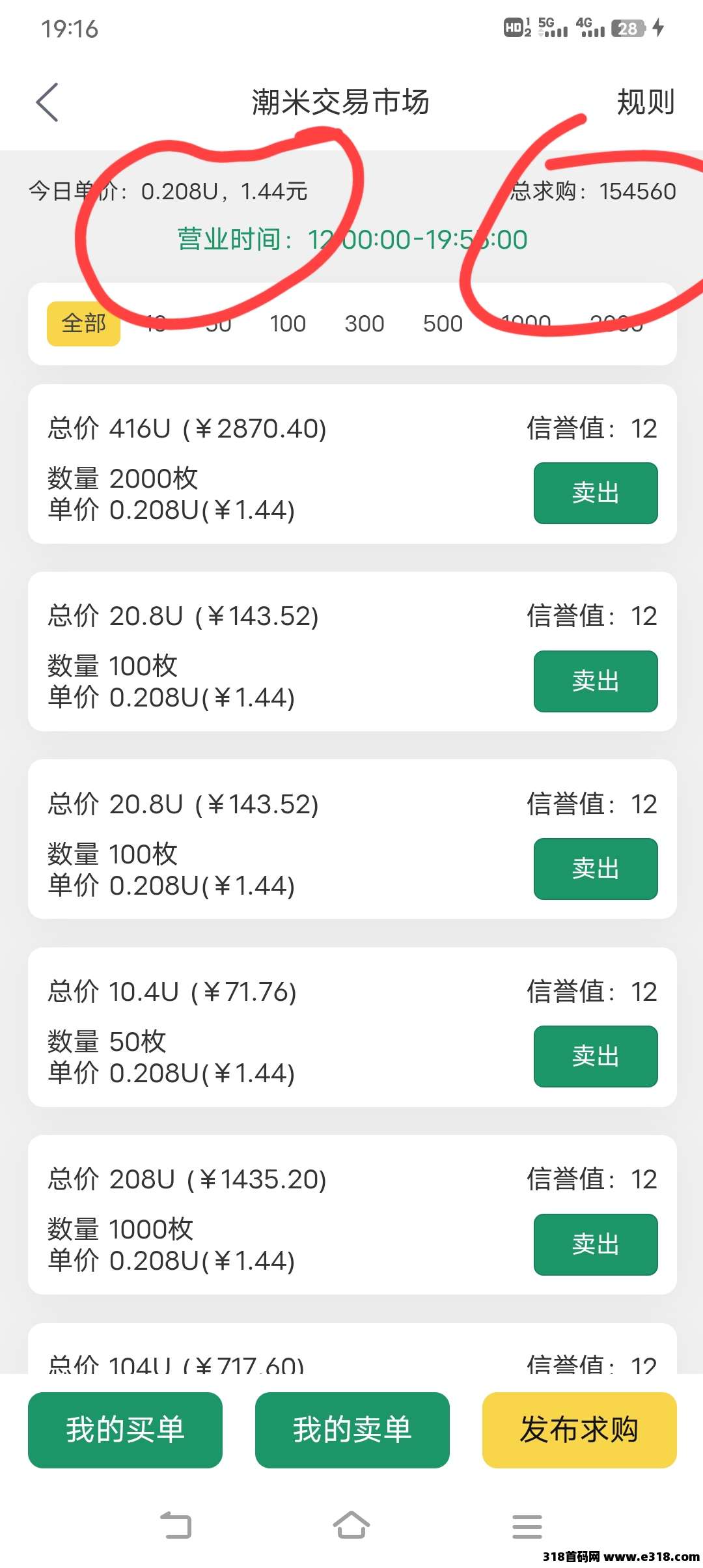 10个起卖,c2c+转赠 手续费8%,最低10.8卖10个。自带官方群