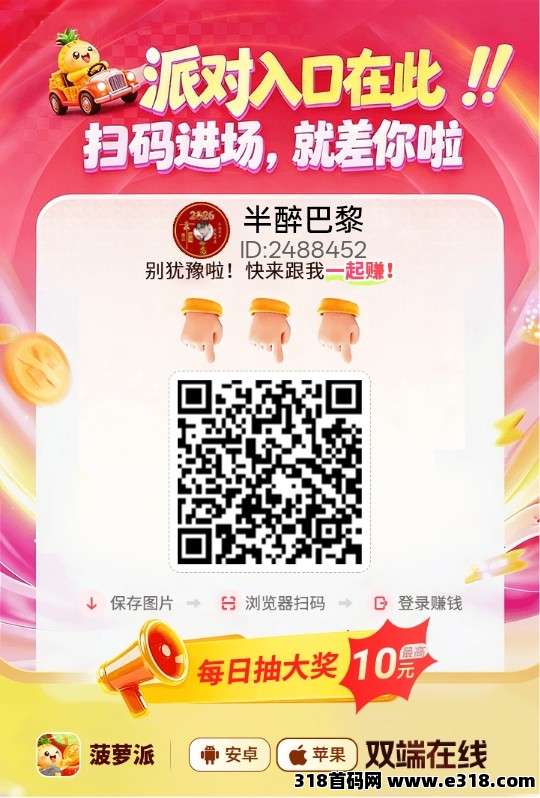 首码菠萝派,扫码下载/自玩提现高额扶持,零撸广告赚,不养机保底收益高,单机每天轻松30-50+,免费提供不养机玩法教程,扶持拉满,待遇置顶!