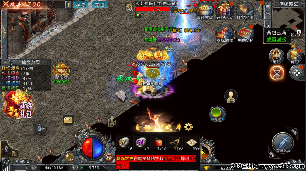 职业建议道士,前期单刷BOSS无压力。